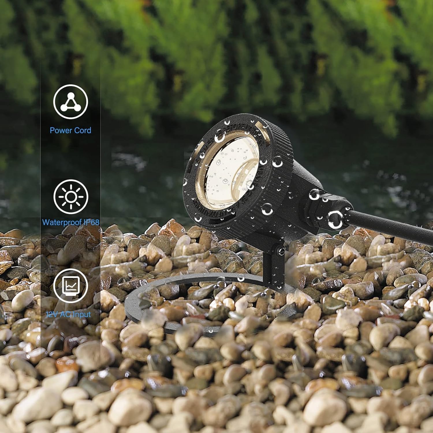 - WITH 15FT WIRE: Our 12V AC landscape pond lights are easily installed to your existing low voltage wiring. Comes with 15ft wire and connect directly to your low voltage transformer