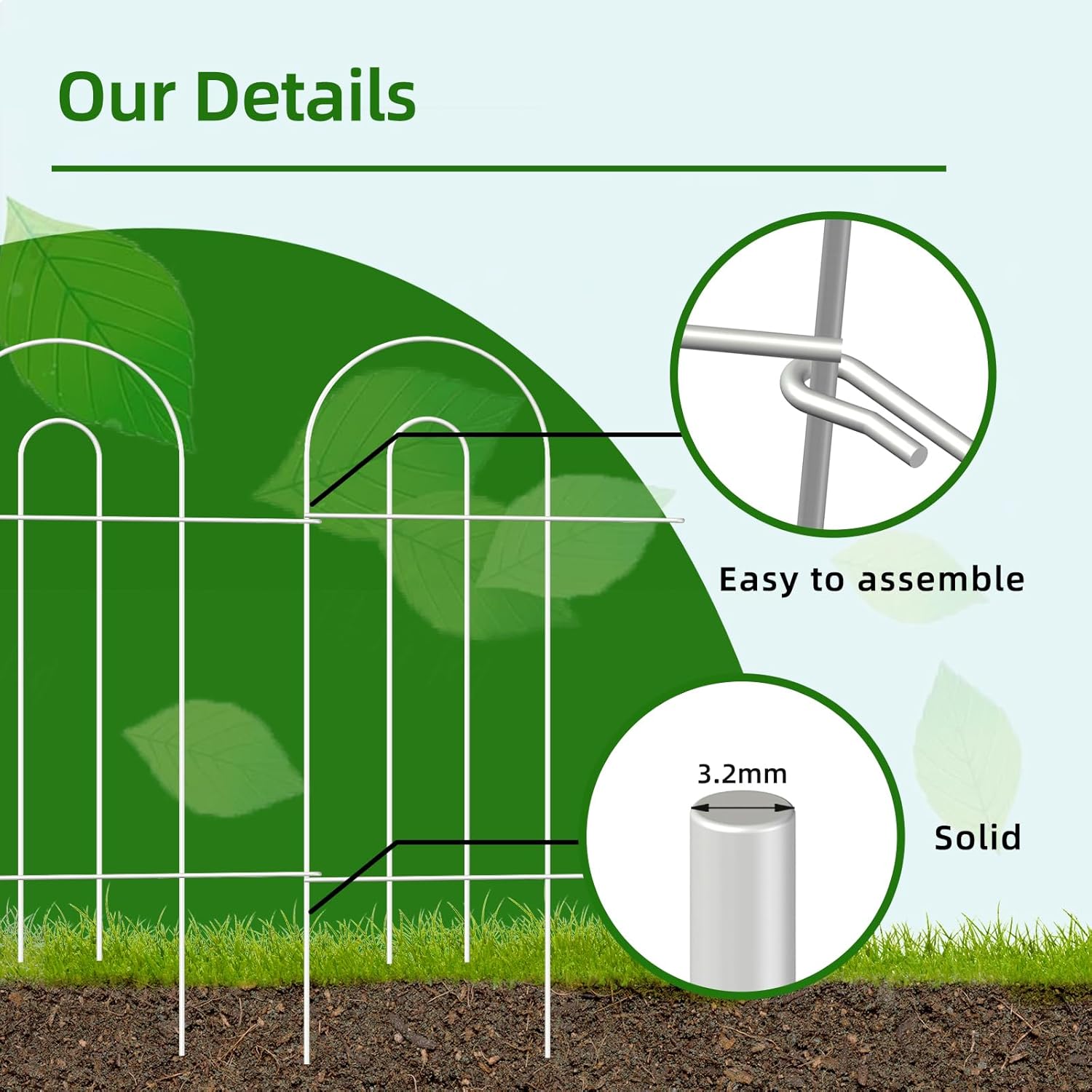 - THE SIZE & MATERIAL: The white garden fence with panels fence 32” high, overall length 20feet in one set (1set composed by 14 panels), The metal garden fence border panel made of iron wire inside then white powder coated surface outside for rustproof material.