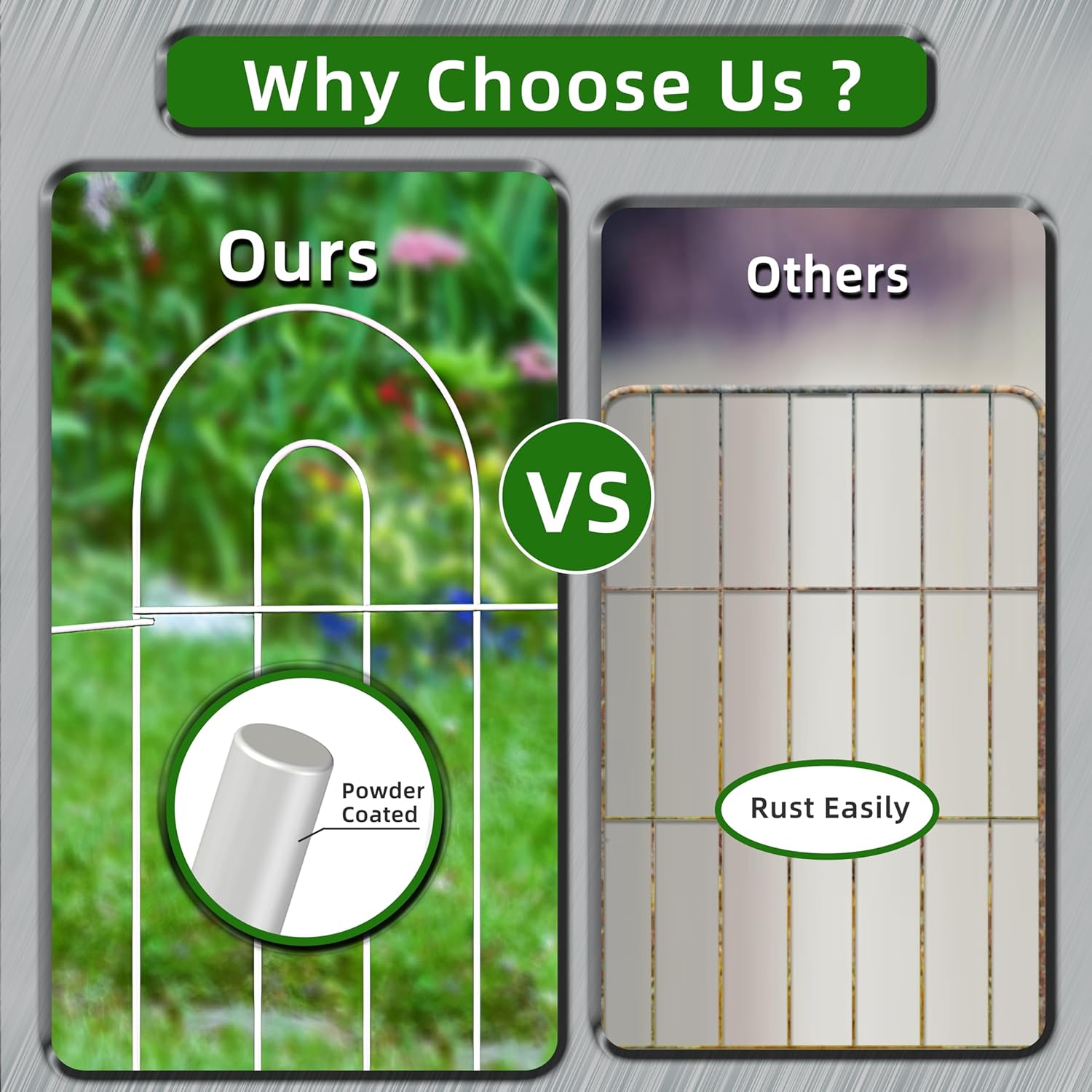 - UNLIMTED EXTENSION AND DECORATION: You can install more than garden fencing panels without limit, White rustproof material. Artsy arch design, self-supporting suits various landscaping and horticultural projects.