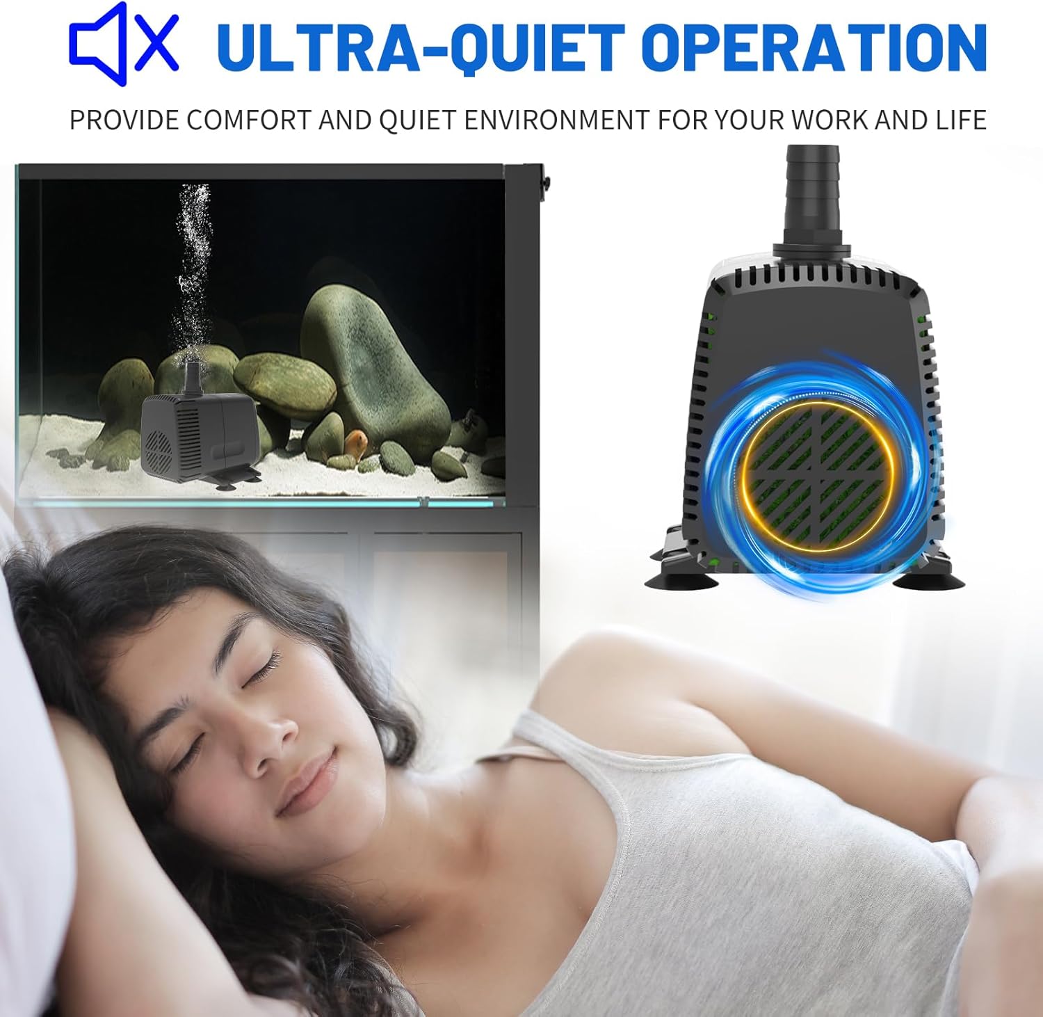 - 【Quality & Ultra Quiet】In order to keep the pump quiet and has a longer service life, increased the cost by using high quality rotor and copper,makes the pump quiet & has longer life than others.