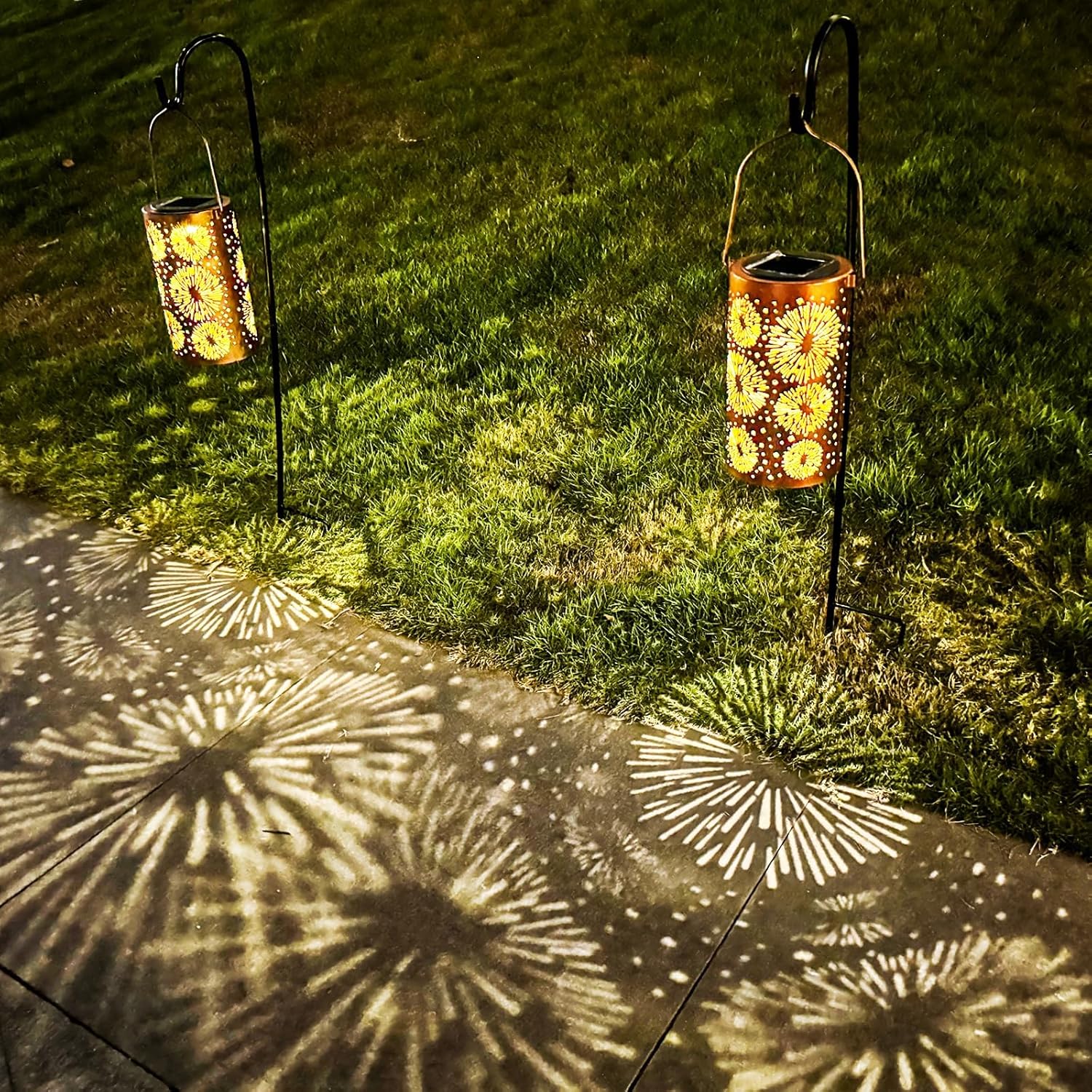 - 【Gorgeous & imaginative Garden Decor 】 Fusion the retro gold, copper of exteriors and irregular pattern inside, at darkness, the solar top casting a bright, warm light with fireworks pattern, Excellent choice for pathway decoration