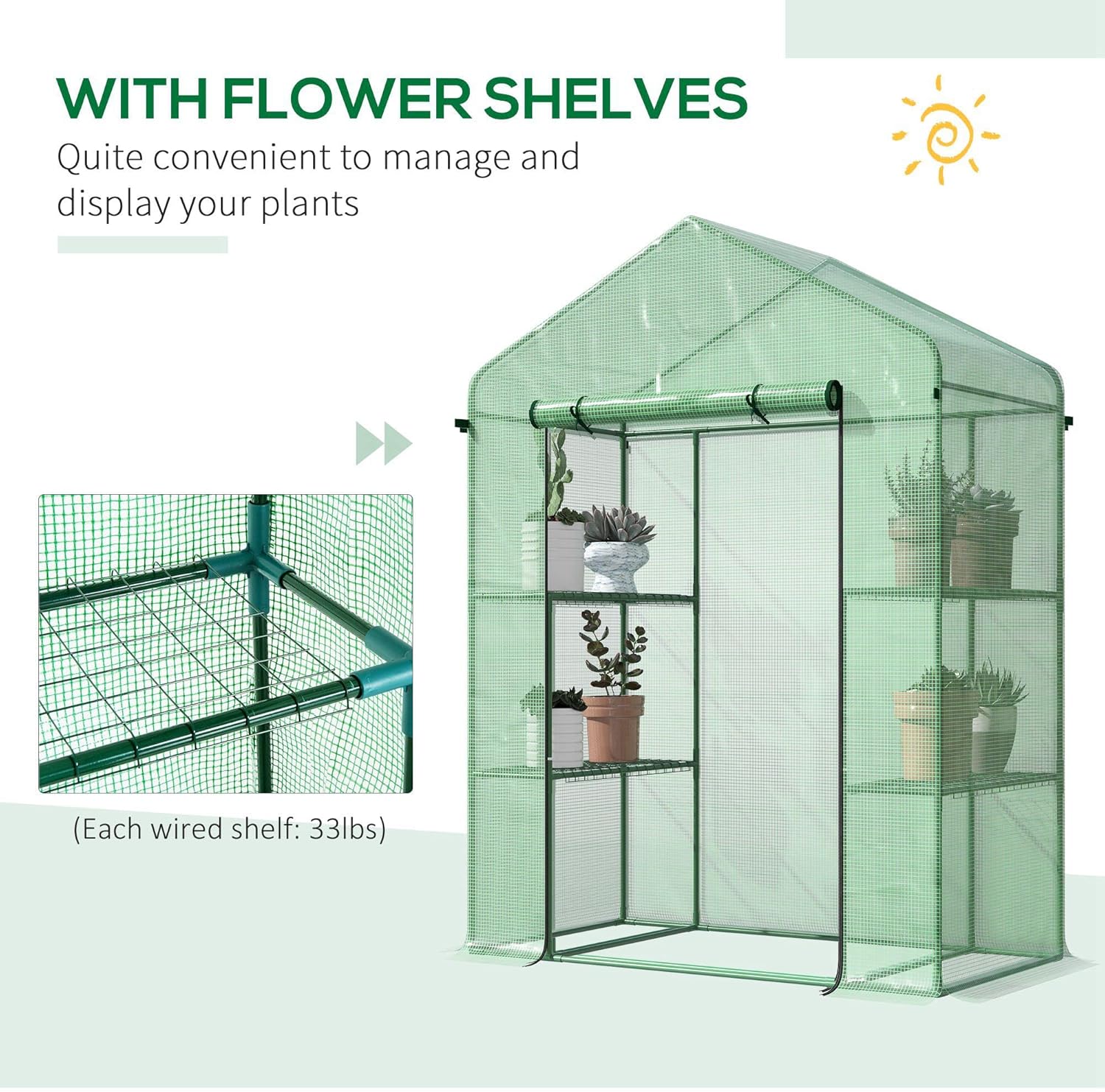 Outsunny 5' x 2.5' x 6.5' Mini Walk-in Greenhouse Kit, Portable Green House with 3 Tier Shelves, Roll-Up Door, and Weatherized PE Cover for Backyard Garden, Green