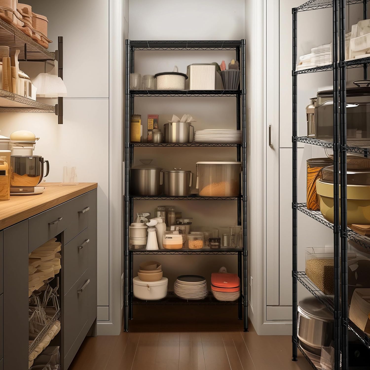 Finnhomy 6-Tier Wire Shelving Unit - Adjustable Steel Wire Rack with 6 Shelves, PE Mat and Stable Leveling Feet, NSF Certified, Black