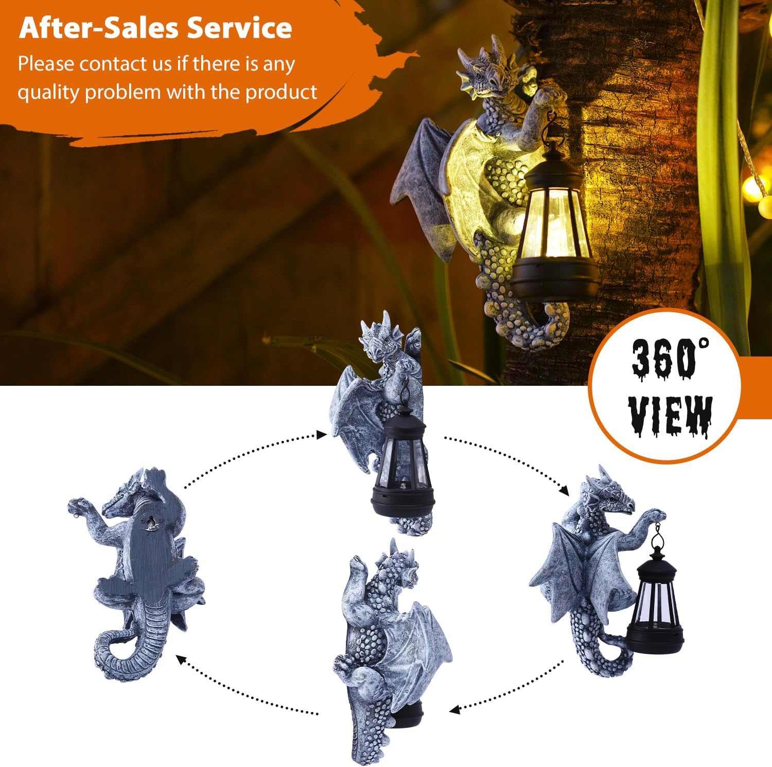 - 【Solar Powered】: The dragon tree hugger with Solar lantern that charges during the day and automatically turns on at night, creating a beautiful illuminated effect in your garden or yard to enhances the ambiance of your outdoor space
