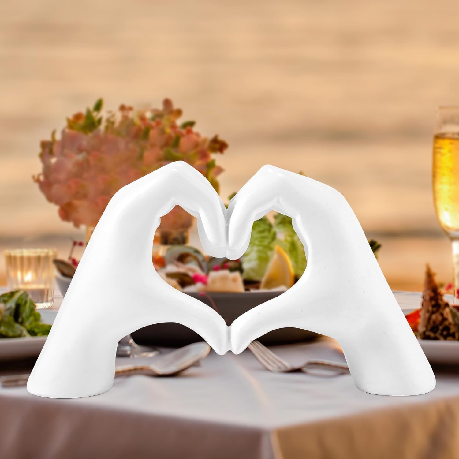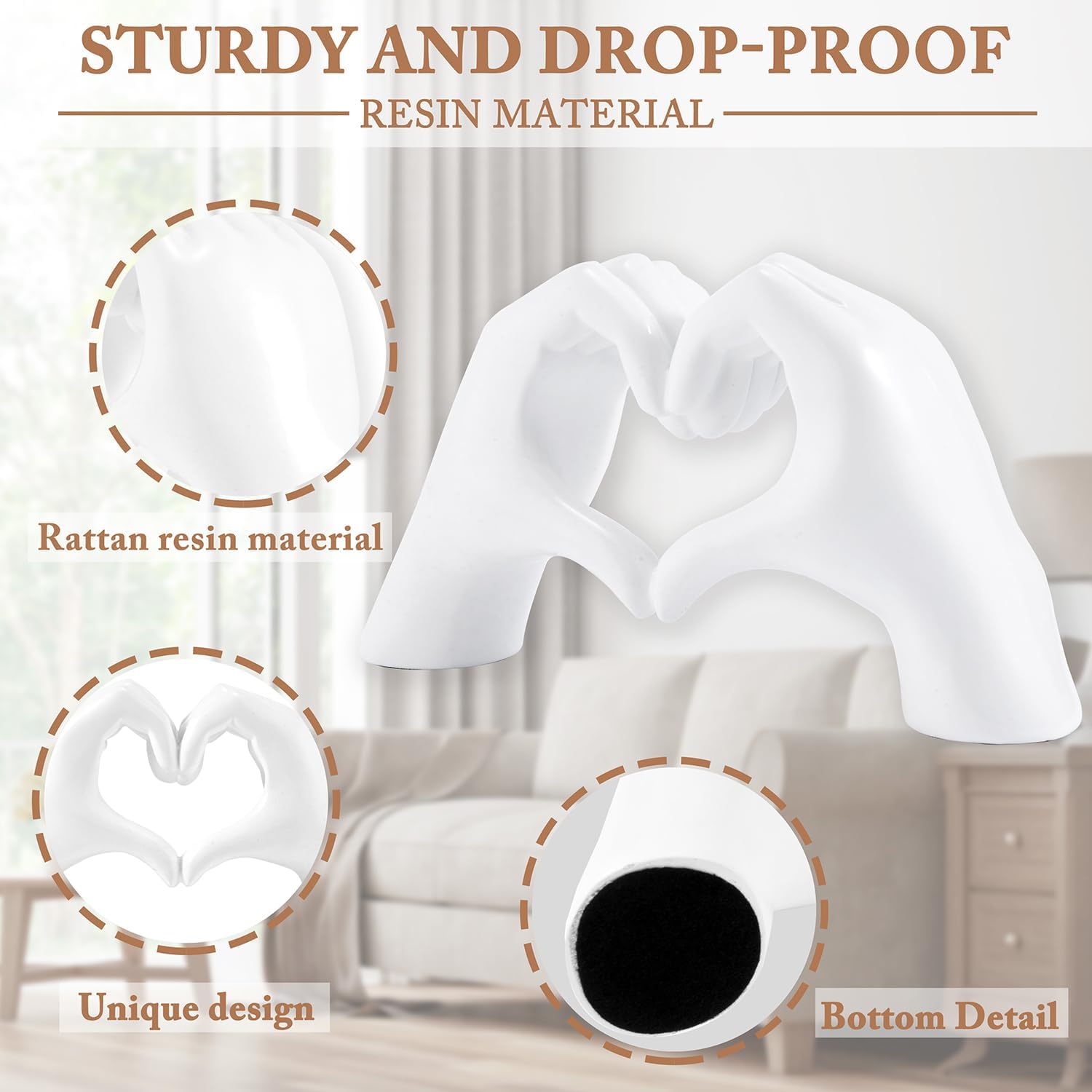 - [HEART HANDED SCULPTURE HOME DECOR]: Hand heart statue adopts sweet love gesture sculpture design; Nordic minimalist style resin handicrafts, love ornaments, modern love sign heart shape finger gesture statue, wedding for couple anniversary couple figurine. It is a whole pendulum and cannot be disassembled. Statue is perfect for home decor, room decoration, bedroom decoration, office decoration, living room decoration, hotel decoration, apartment decoration.