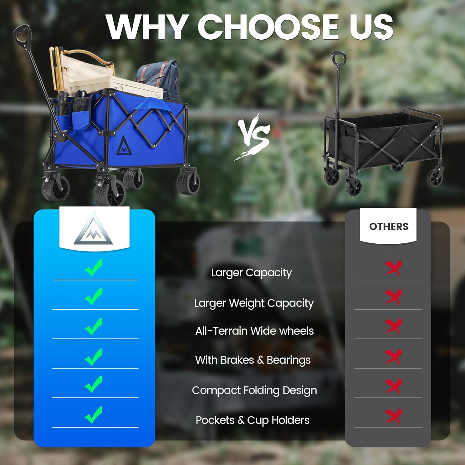 - 【Convenient and easy to use】-The Collapsible Wagon Folding Beach Cart by Muarch is designed for convenience and simplicity. It can be quickly folded and easily stored, making it perfect for outdoor activities such as camping and beach trips.