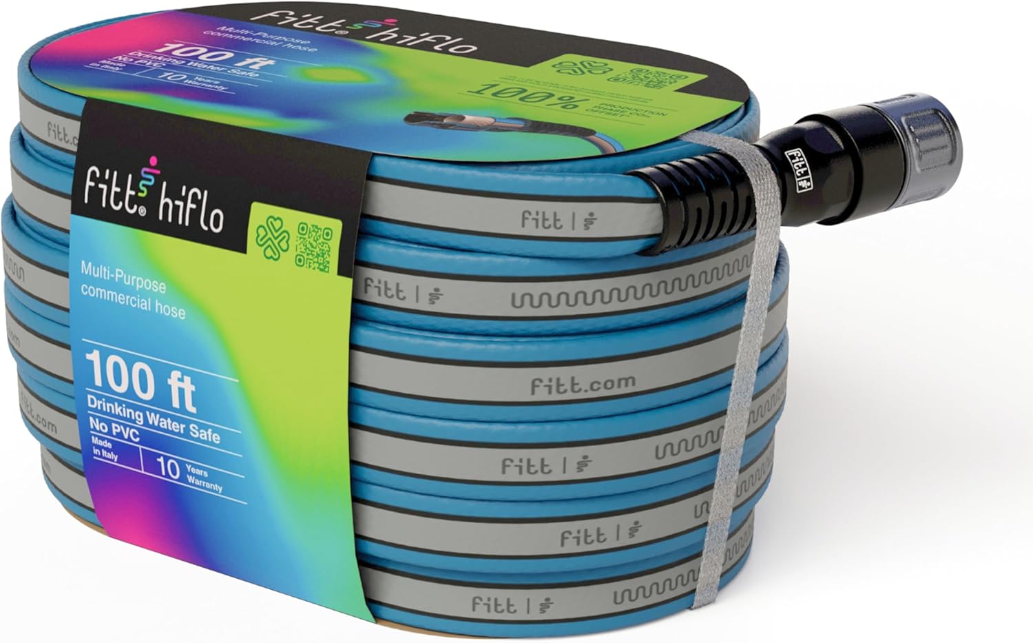 FITT HiFlo Water Hose 100ft, Multipurpose Flat Garden Hose, Easy to Use and Long-lasting Performance, Grey