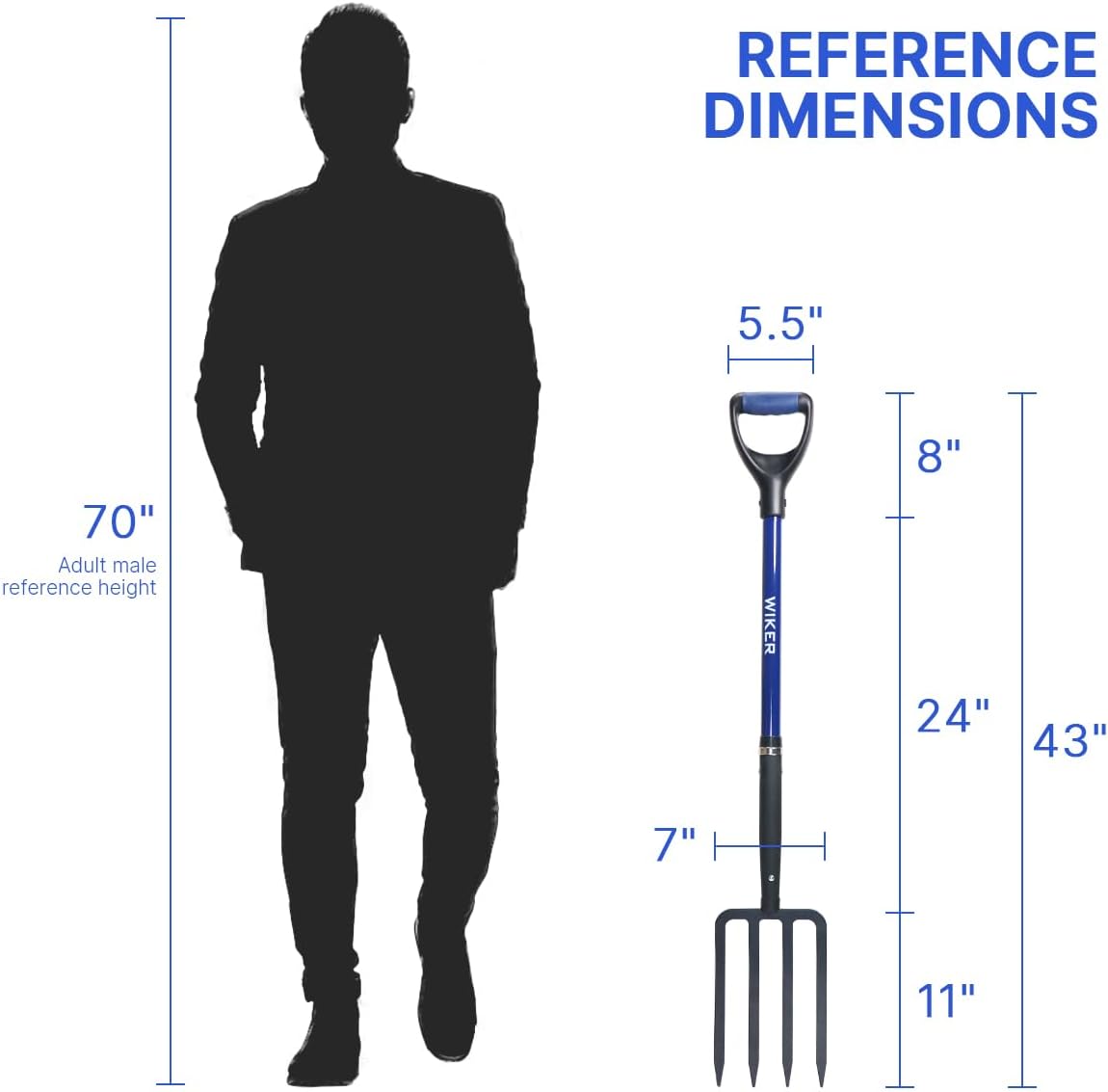 WIKER Pitchfork,Pitchforks for Gardening Digging Composting Spading,4Tines Garden Fork witn Fiberglass Handle,43 Inches