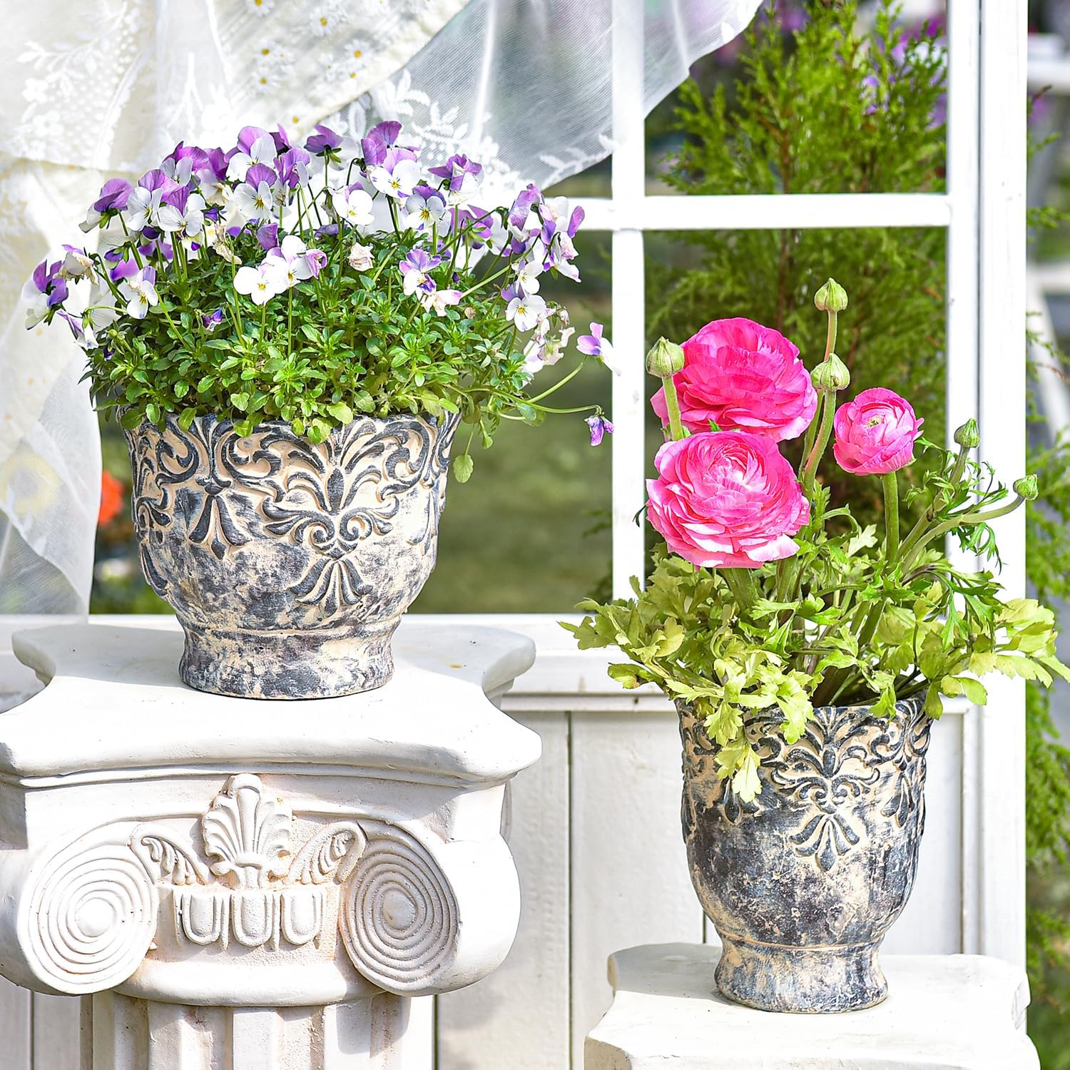 - Vintage Design: These decorative cement planters with intricate embossed design, the retro, natural finish goes well with mid-century or Bohemia decor, adding an enchanting touch to any space.