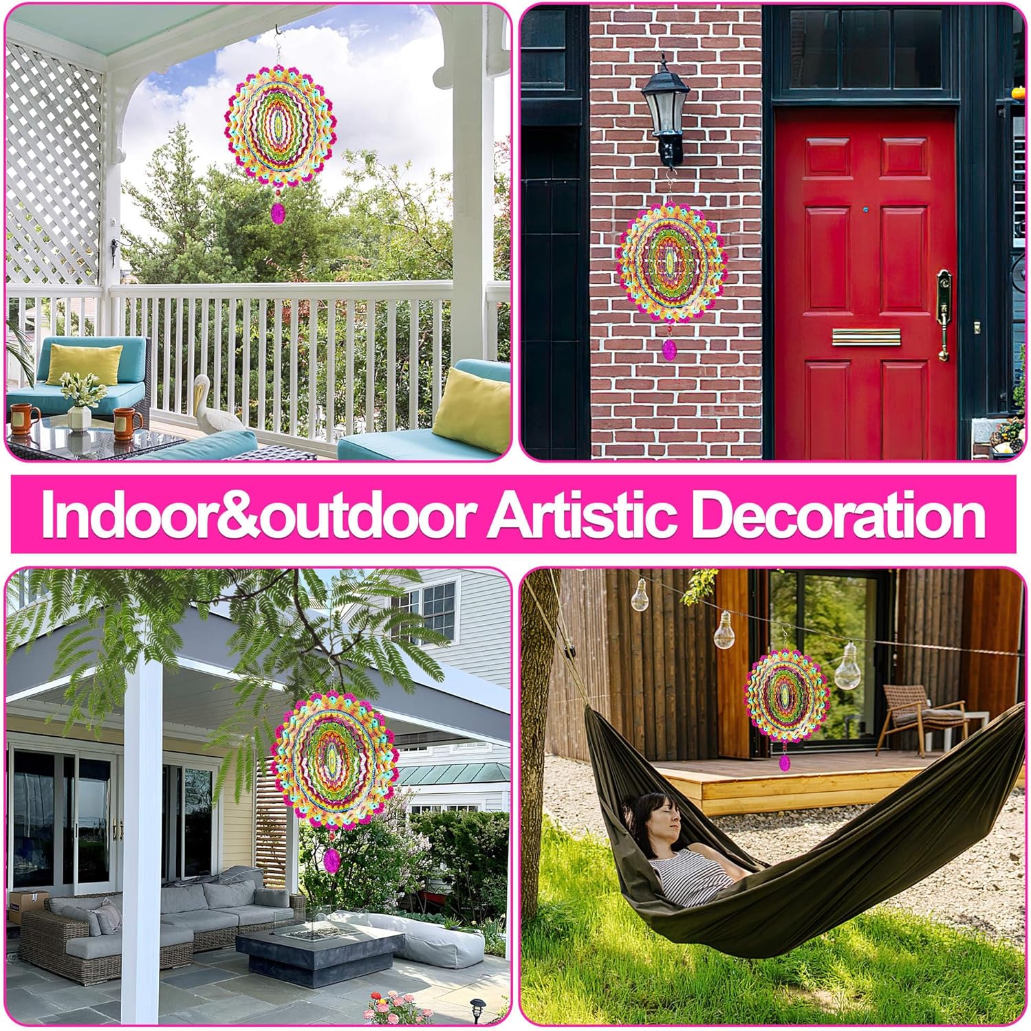- 【Excellent Material, Greatly Made】Our Wind Spinners are cut from bright-colored stainless steel. The surface is protected by an eco-friendly material coating which prevents colors from fading when hung outdoors. Perfect for yard decorations outdoor.