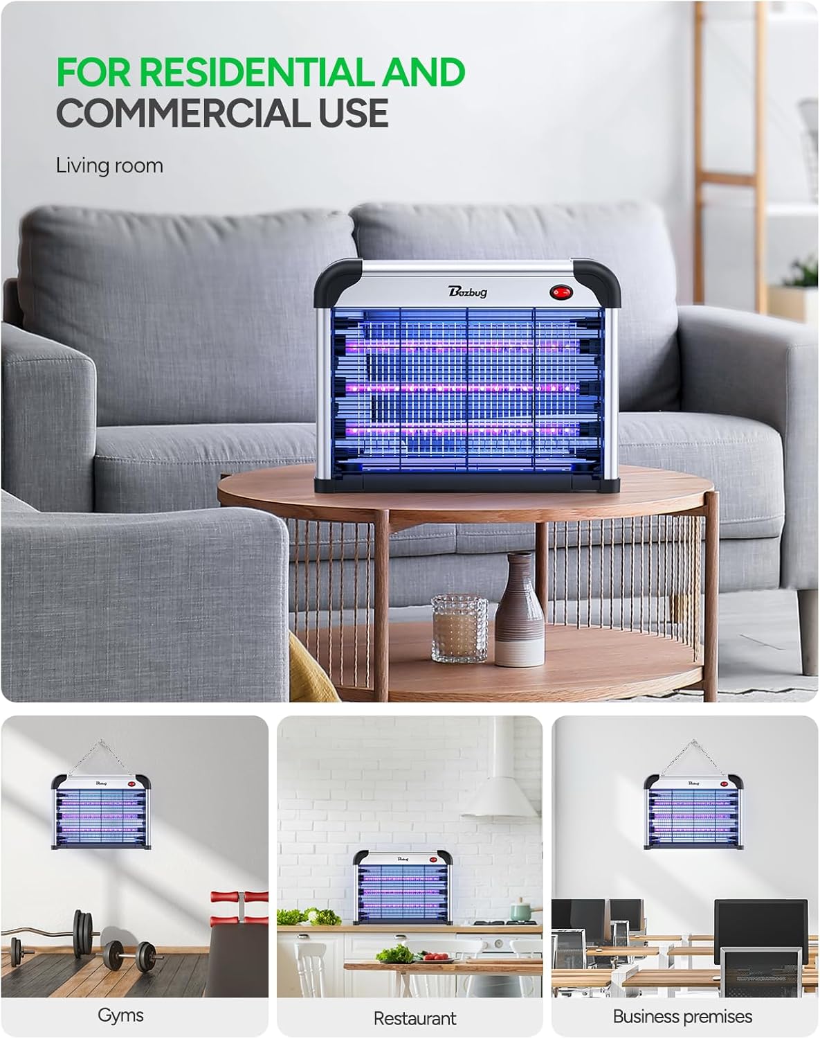 - Efficient and Safe: This electric bug zapper uses 3800V high-voltage physical electric shocks to kill bugs like mosquitoes, flies, moths, and gnats, without the need for dangerous traps. It is equipped with a protective grid to avoid accidental contact by children and pets, making it a reliable mosquito-killing solution for indoor family use.