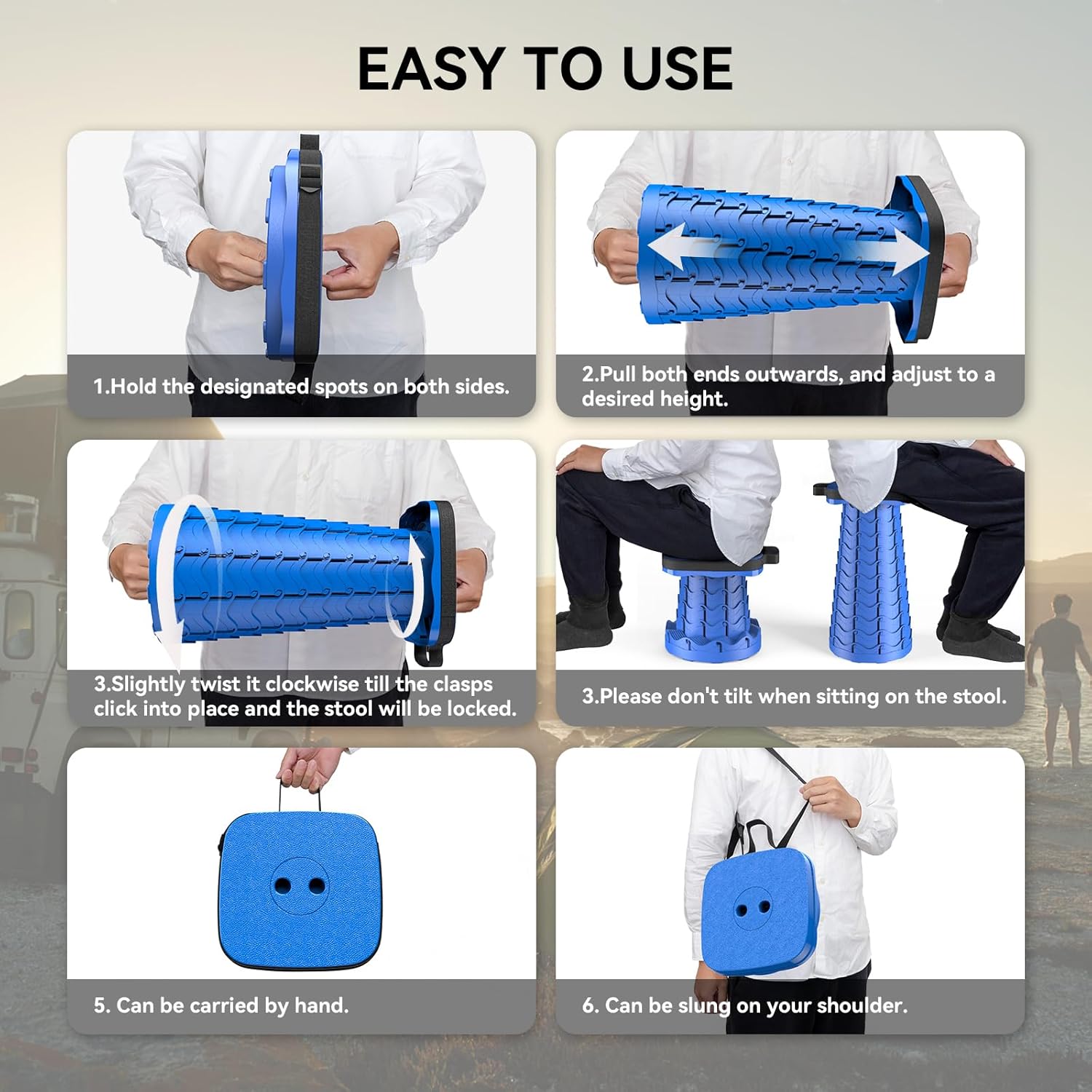 - Collapsible Camping Stool - Our retractable stool can be adjusted to the desired height ranging from 2.5 inches to 18 inches. Different heights can be set according to your usage scenario. You will find that this fold-up stool is suitable for people of all ages.