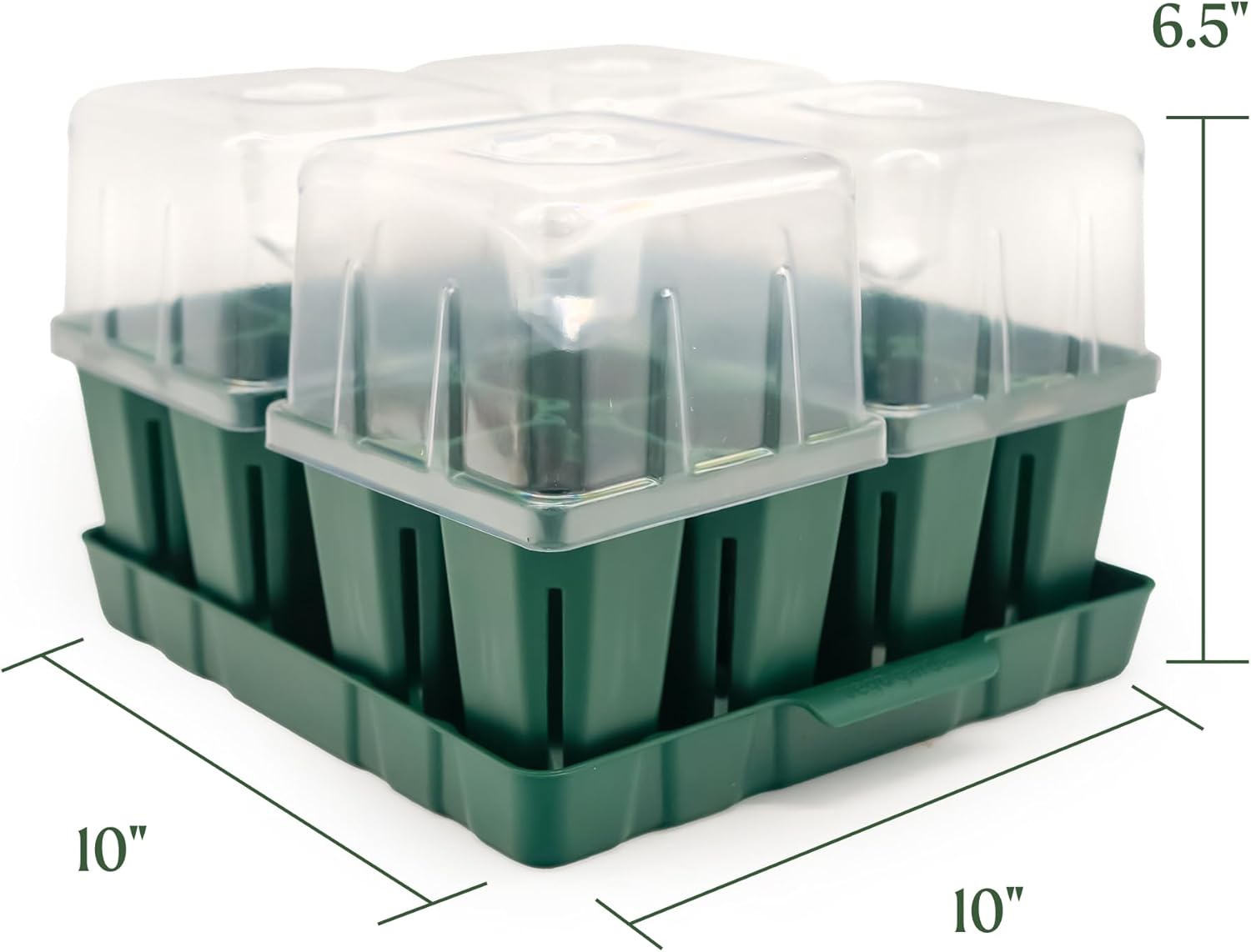 Vego garden Seedling Suite Products, 4 Pack Jumbo Seedling Trays with Seedling Tray Lids and 10" x 10" Bottom Watering Trays