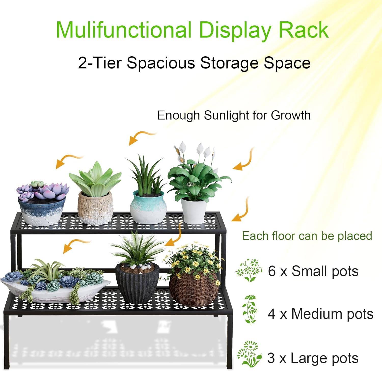 - 【Fully absorb sunlight】The product is considered for the planting of customers, the height of each layer to ensure that each plant can have enough sunlight environment fully irradiation, carefully designed storage space iron frame, unique retro pattern design let you master the spacing of plants, thrive.