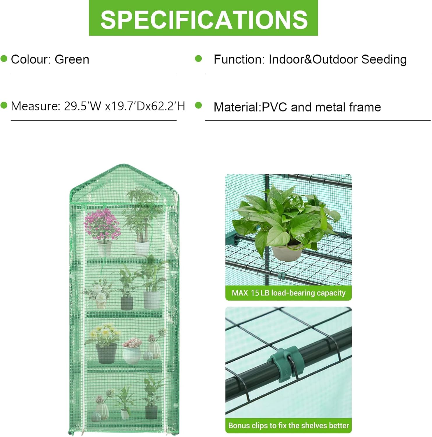 - 【Function】Mini 4 Tier Portable Greenhouse protects plants and seedlings from elements of weather and climate. Ideal for starting seedlings, protecting young plants or to get a head start or extend the plant growing season. Enjoy fresh, healthy flowers and vegetables all year round.