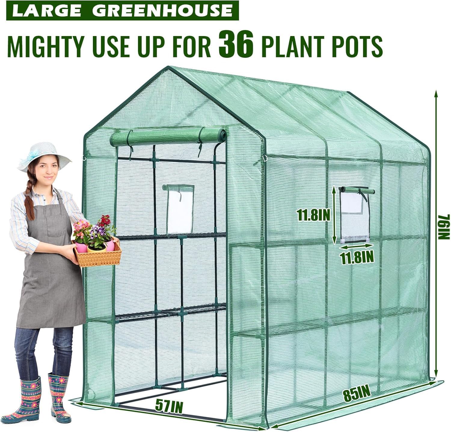 Greengro Greenhouse, 57 x 85 x 76'' Greenhouses for Outdoors, Portable Greenhouse Kit with Mesh Side Windows, PE Cover, 8 Shelves, Heavy Duty Walk in Green House for Backyard Garden Indoor Outside