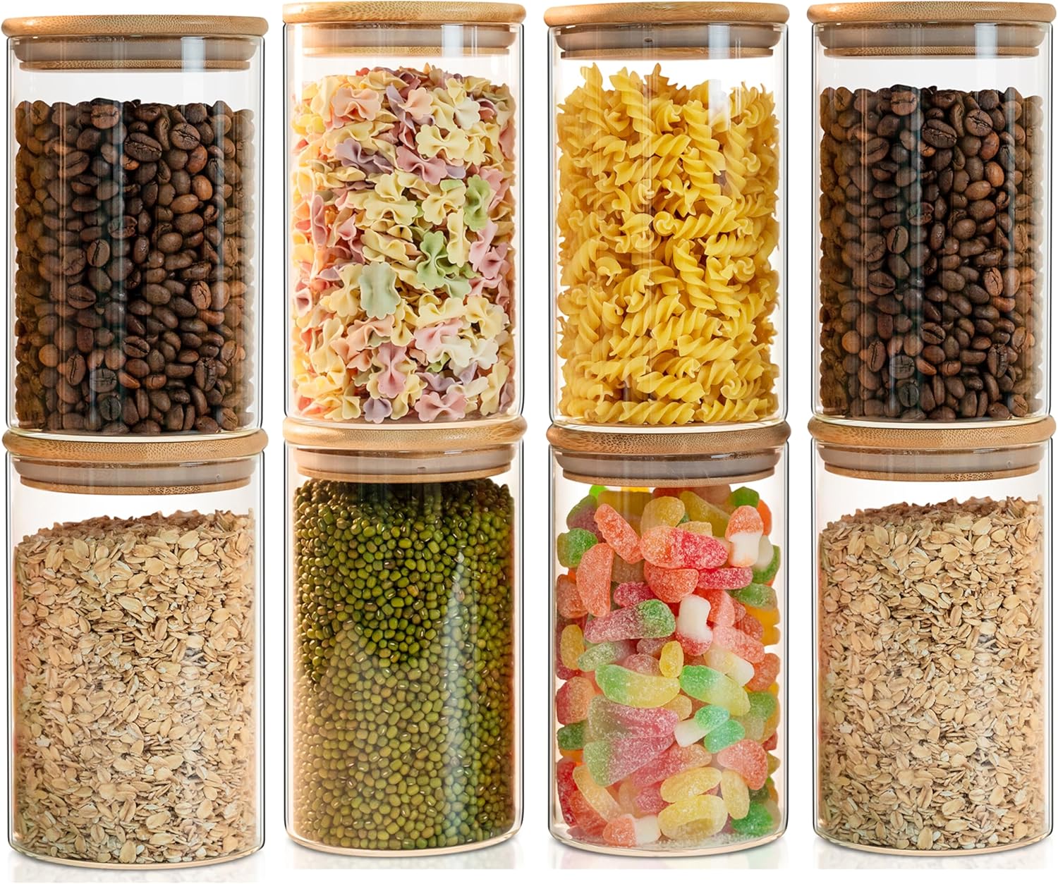 Glass Food Storage Jars Set of 8,26oz-Glass Storage Containers Clear Glass Food Canister with Bamboo Lid Airtight For Serving Tea, Coffee, Flour,Candy, Cookie, Spice(Round-80CMx150CM)