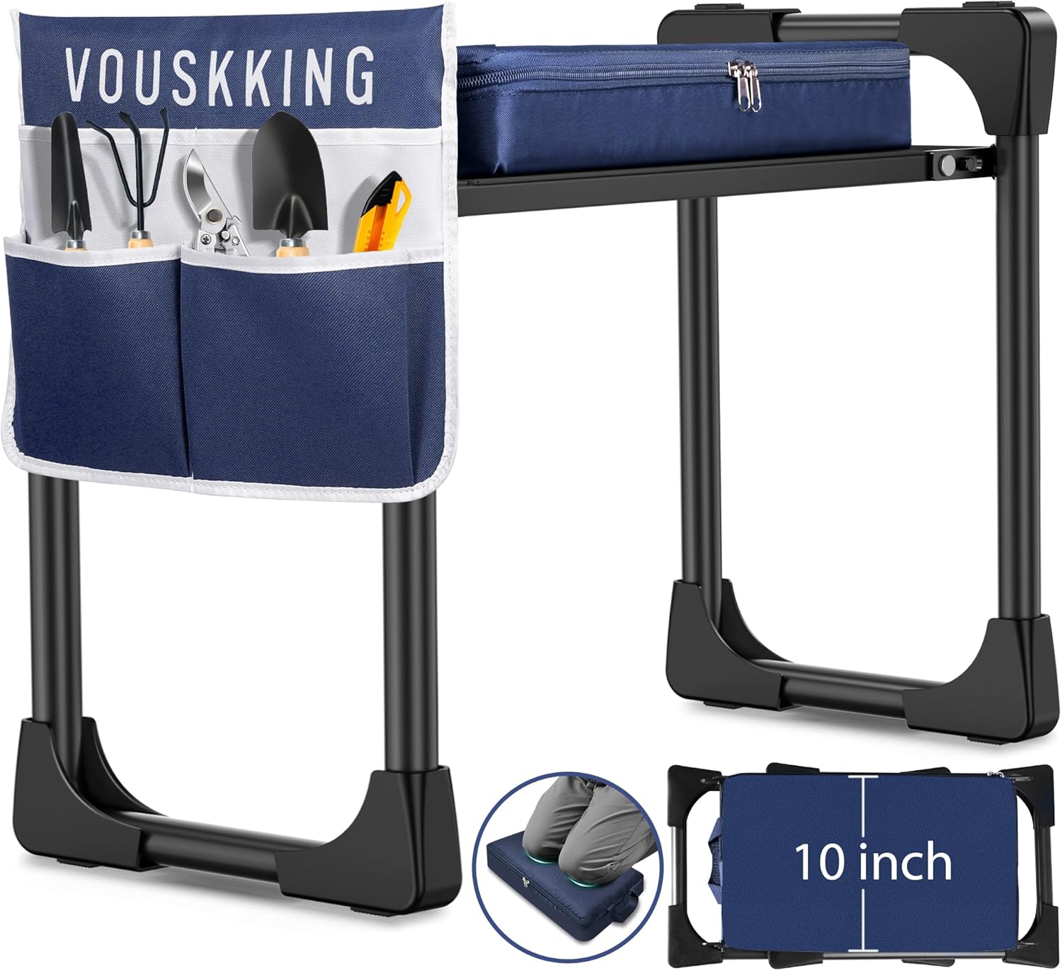 - ă2 in 1 Functional Kneeling Stoolă VOUSKKING 2 in 1 garden kneeling stool is a good helper for your gardening work! When you use it as a garden kneeler to protect your knees , when use it as a workseat to relieve you tired. Truly make one product to satisfy your two requirements.