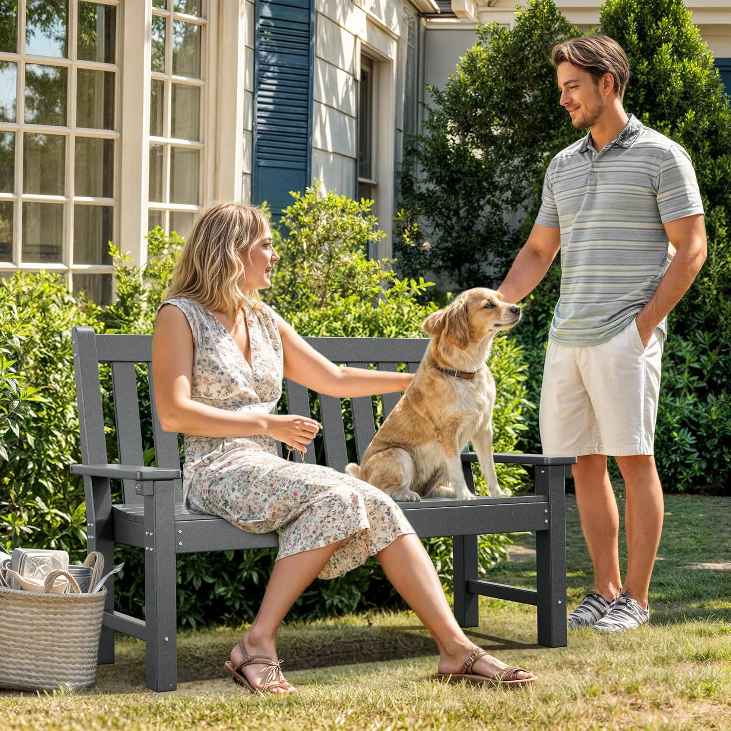 YITAHOME Garden Bench, All Weather Outdoor Bench for 2-3 Persons, Fade/Rot Resistance Patio Benches for Park, Porch, Patio & Backyard (Grey)