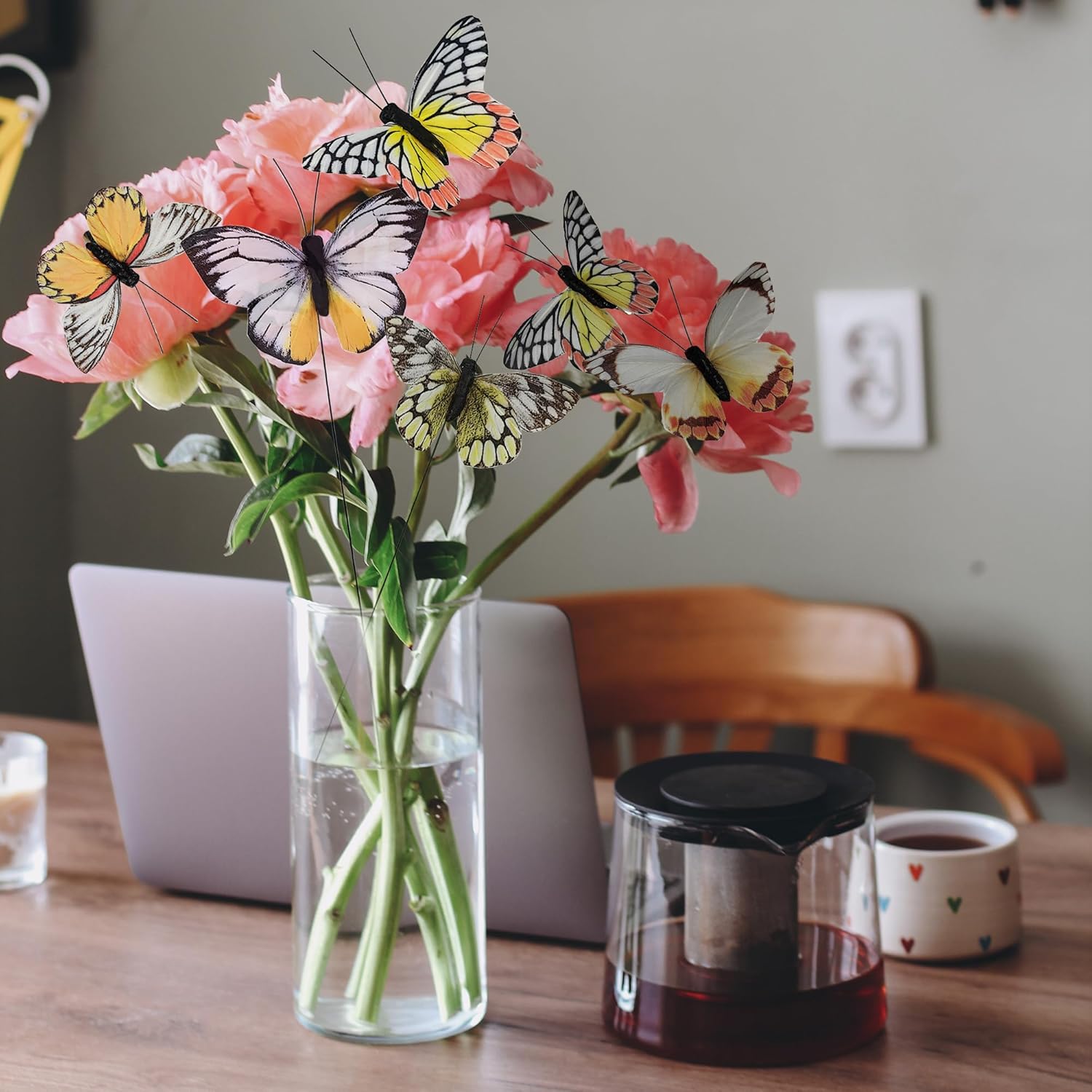 Cartanfill- Artificial Feather Simulation Butterfly Party Decoration Set, a Set of 12 Pieces with Clips, Used for Home Decoration in 12 Colors.… (D Wire)