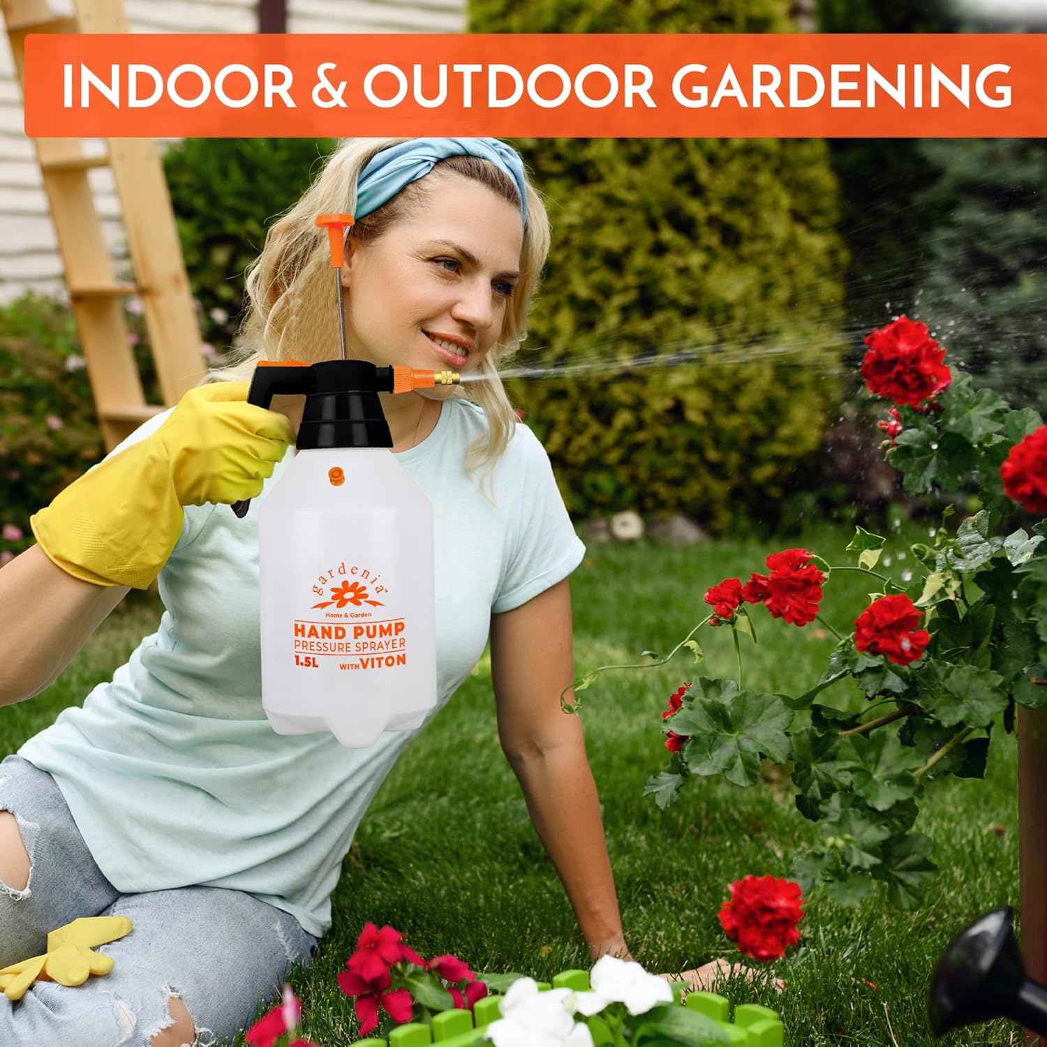 Handheld Pumping Sprayer Viton Seals Sprayers in Lawn and Garden, Spray Bottles for Cleaning Chemical Sprayer Continuous Spray Bottle for Plants 1.5L (0.4 Gal/51oz)