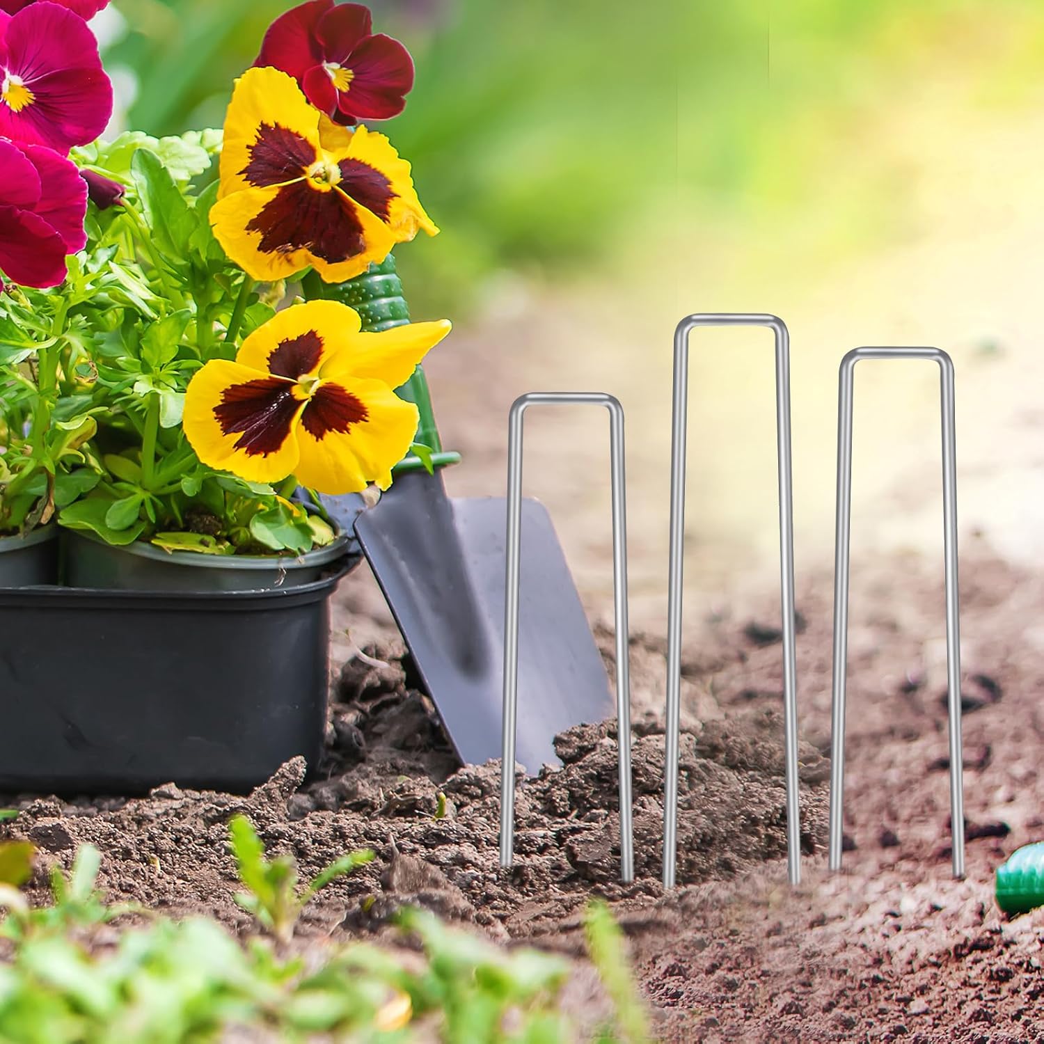 - 【Size】 Our landscape fabric staples are 6 inches long, 1 inch wide, 11 gauge (wire diameter 3mm). The size is perfect for your outdoor landscapes, patio and home projects. The gauge allows our stakes to be stronger and more Sturdy.