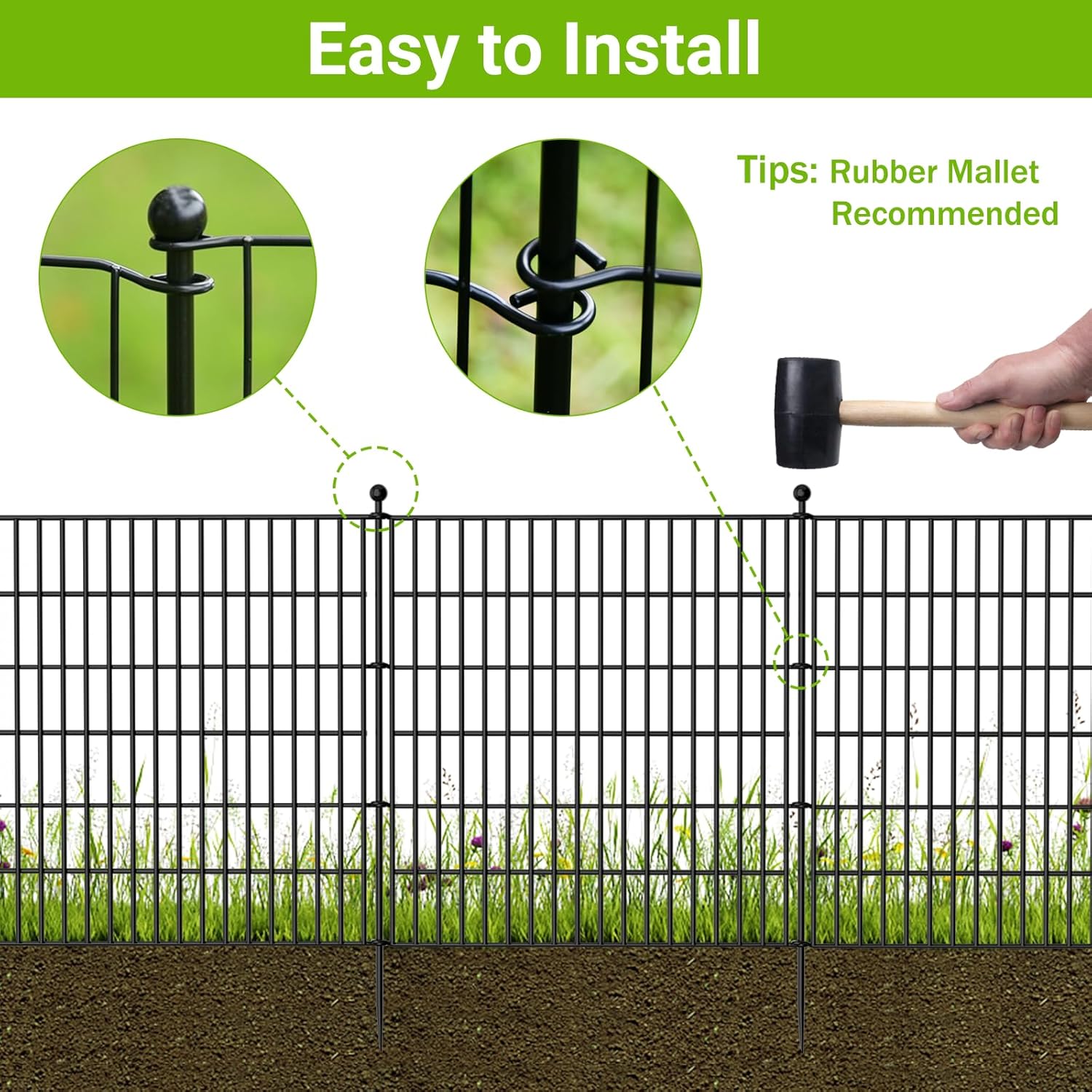 - LOW-MAINTENANCE & RUSTPROOF MATERIAL>>Say goodbye to the hassle of maintaining wooden fences. Our rustproof metal garden fence is made from high-quality wrought iron that won't rot, warp, or fade over time. Enjoy minimal upkeep and years of reliable performance in your yard and garden.