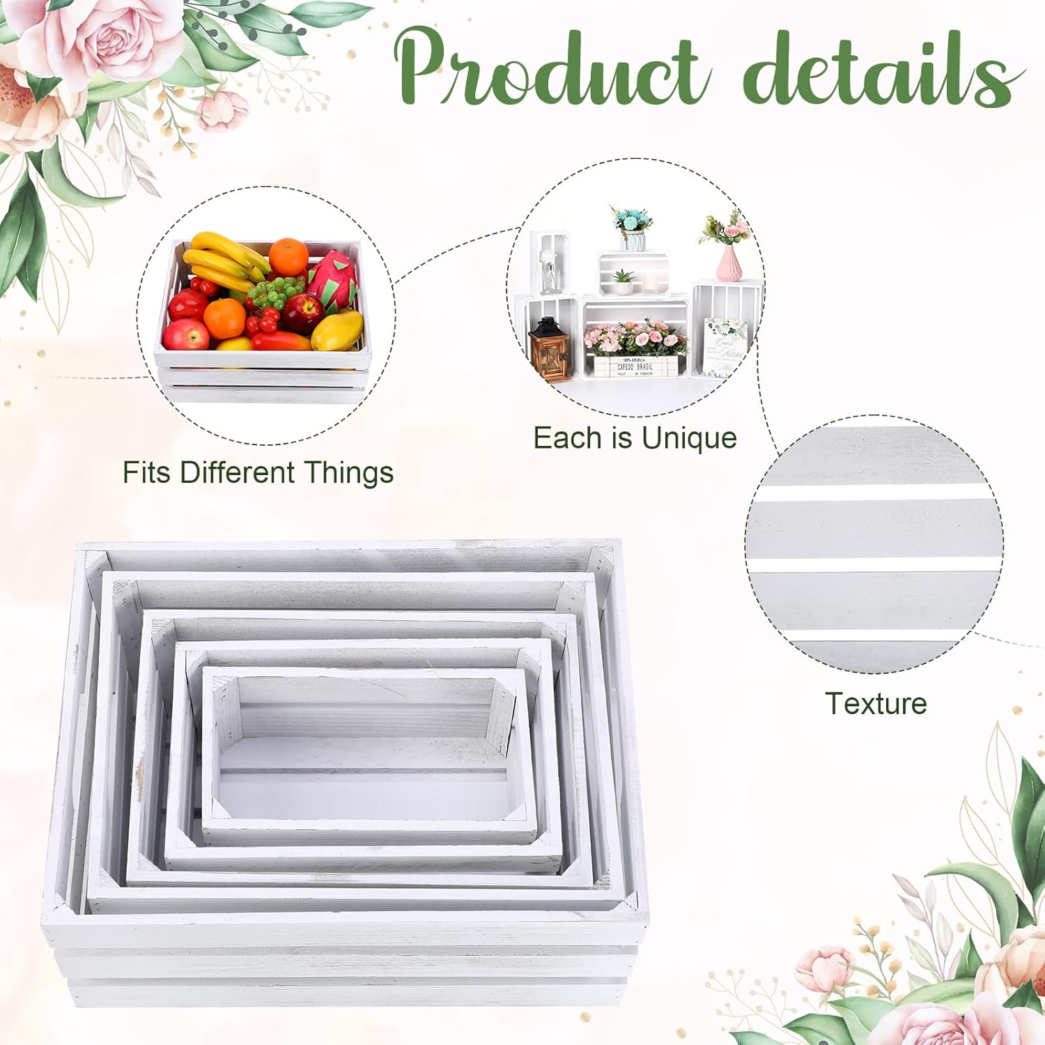 - Practical Handles and Nesting Design: the nesting design of these farmhouse wood crate boxes adds to their usefulness, allowing for easy and efficient storage when they're not in use; The inclusion of handles makes them convenient to maneuver around, fitting into your space seamlessly; These crates are a smart and versatile choice, offering practicality and storage optimization