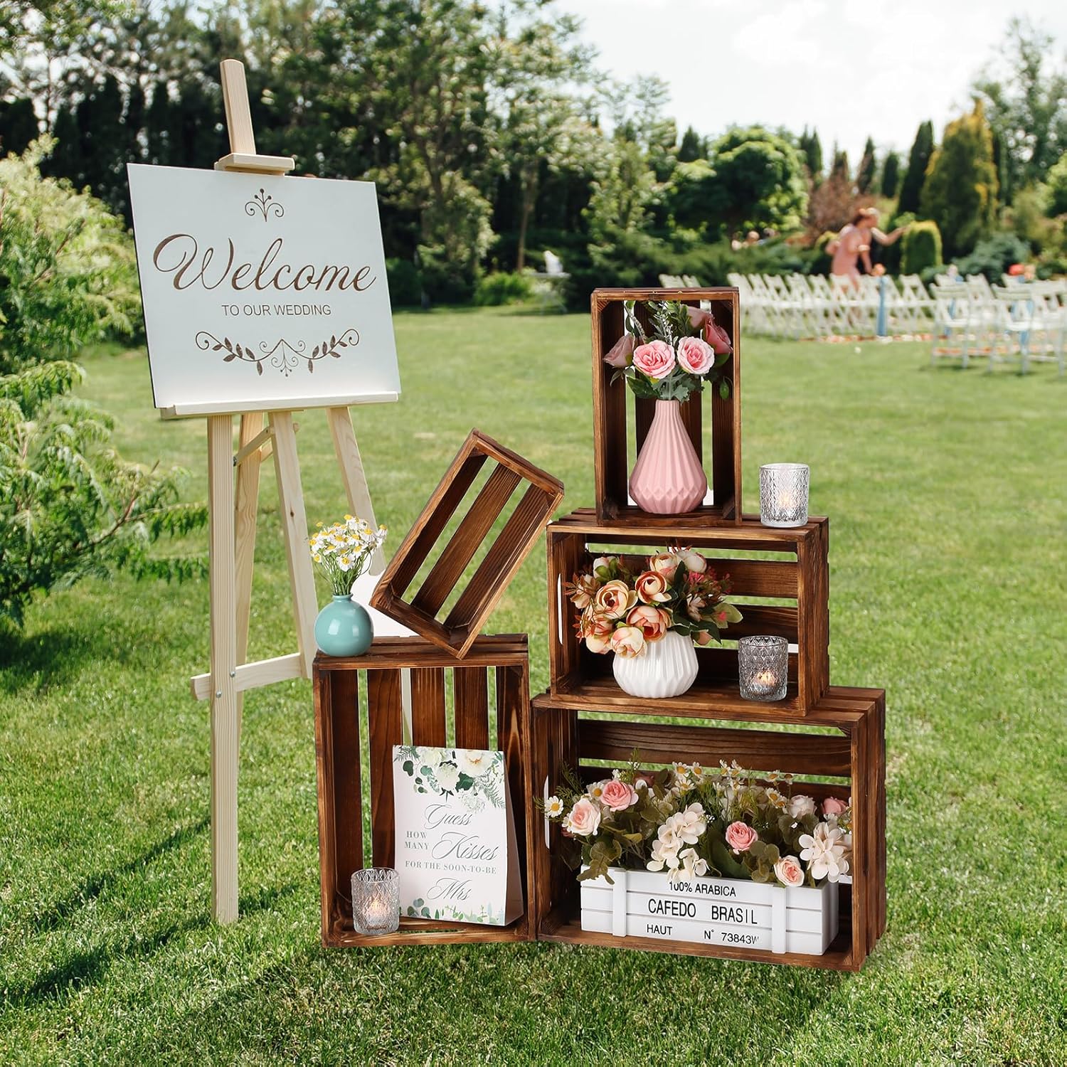 - Beautiful Rustic Appeal: constructed from quality pine, these 5 decorative wooden crates are a stunning addition to any event or decoration style; Ideal for rustic weddings, Christmas parties, they can effortlessly accommodate decorations like flowers, champagne bottles, or picture frames, further enhancing their appeal; The natural beauty of these wooden boxes adds a charming rustic touch to your space, meeting your requirements properly