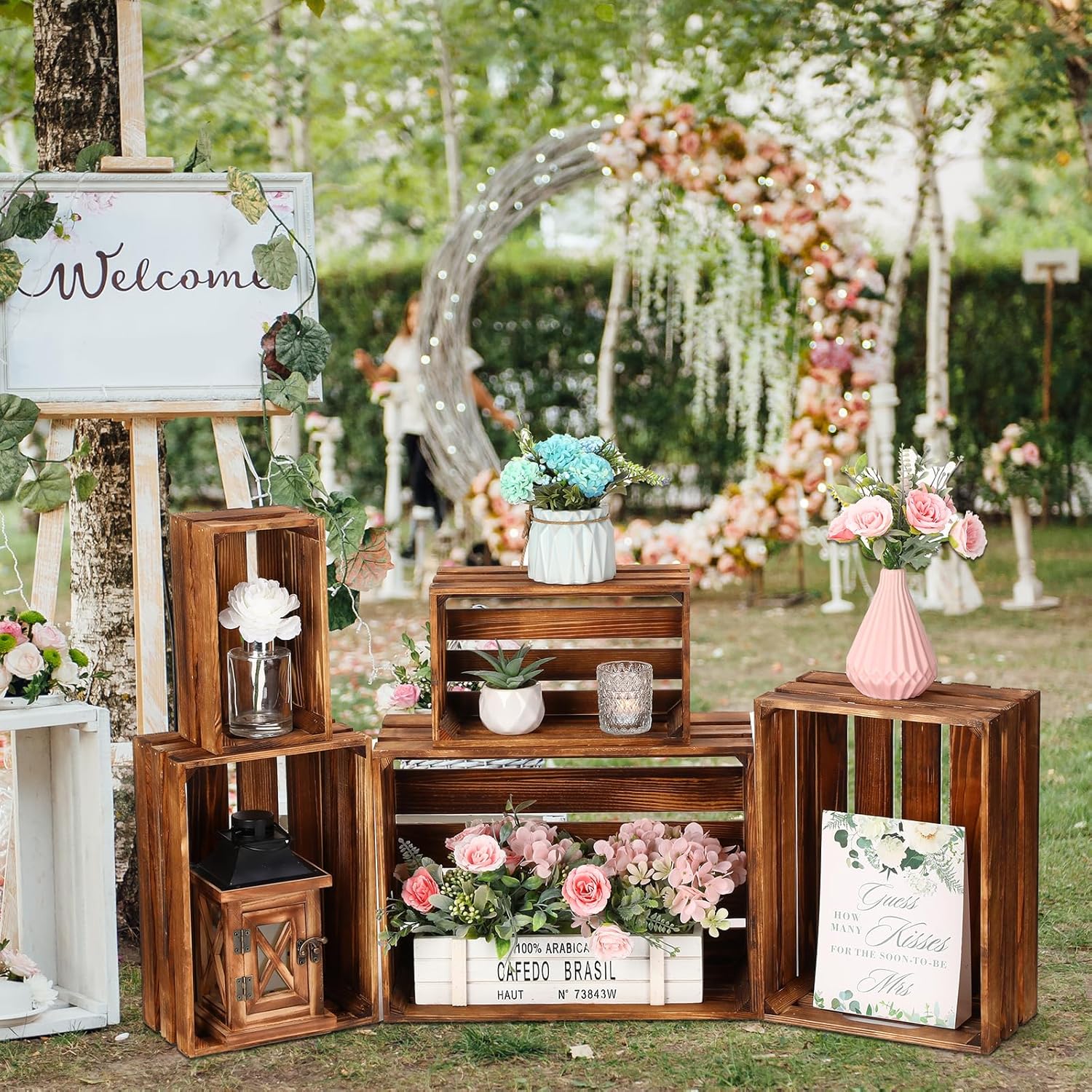 - Versatile Functionality: these stackable crates aren't just delightful in appearance; They're also efficient in function; Whether it's a wedding or just everyday home storage, these crates can adapt to any setting; Their universal charm fits into any room or occasion in your house, conveniently satisfying your decoration and storage requirements