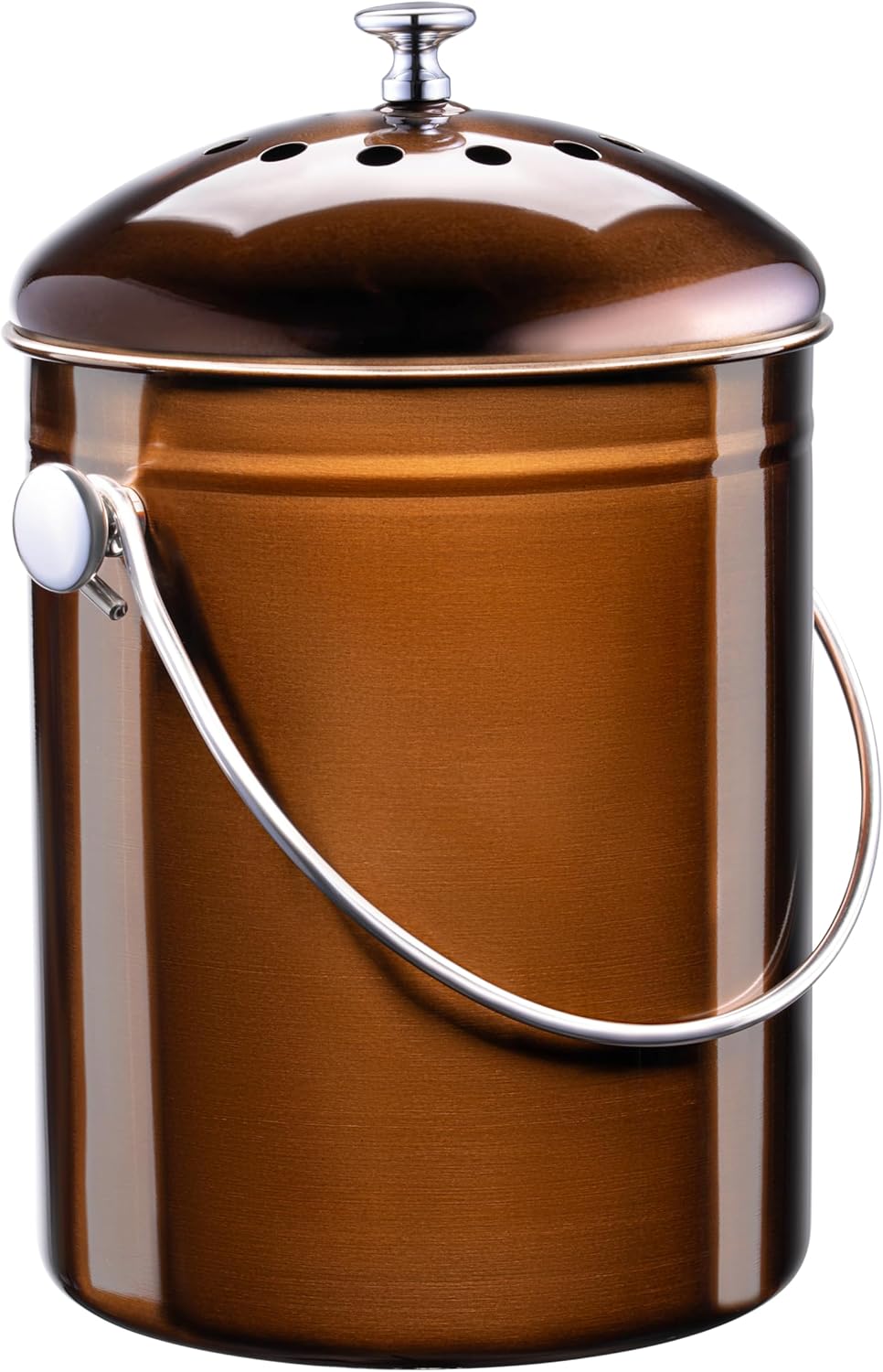 - EASY TO CLEAN & RESISTANT TO LEAKS: Our one-piece molded counter compost bin with lid, resists rust and leaks, making it easy to clean and maintain. Say goodbye to welded bins that deteriorate over time.