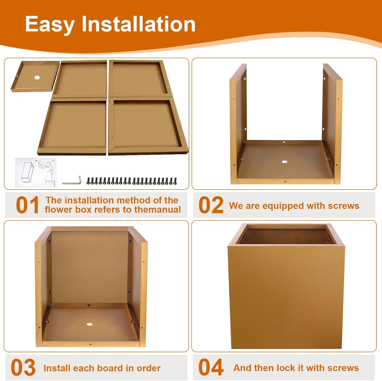 - 【Easy to Assemble】: The installation method of the flower box refers to the manual. We are equipped with screws, install each board in order, and then lock it with screws