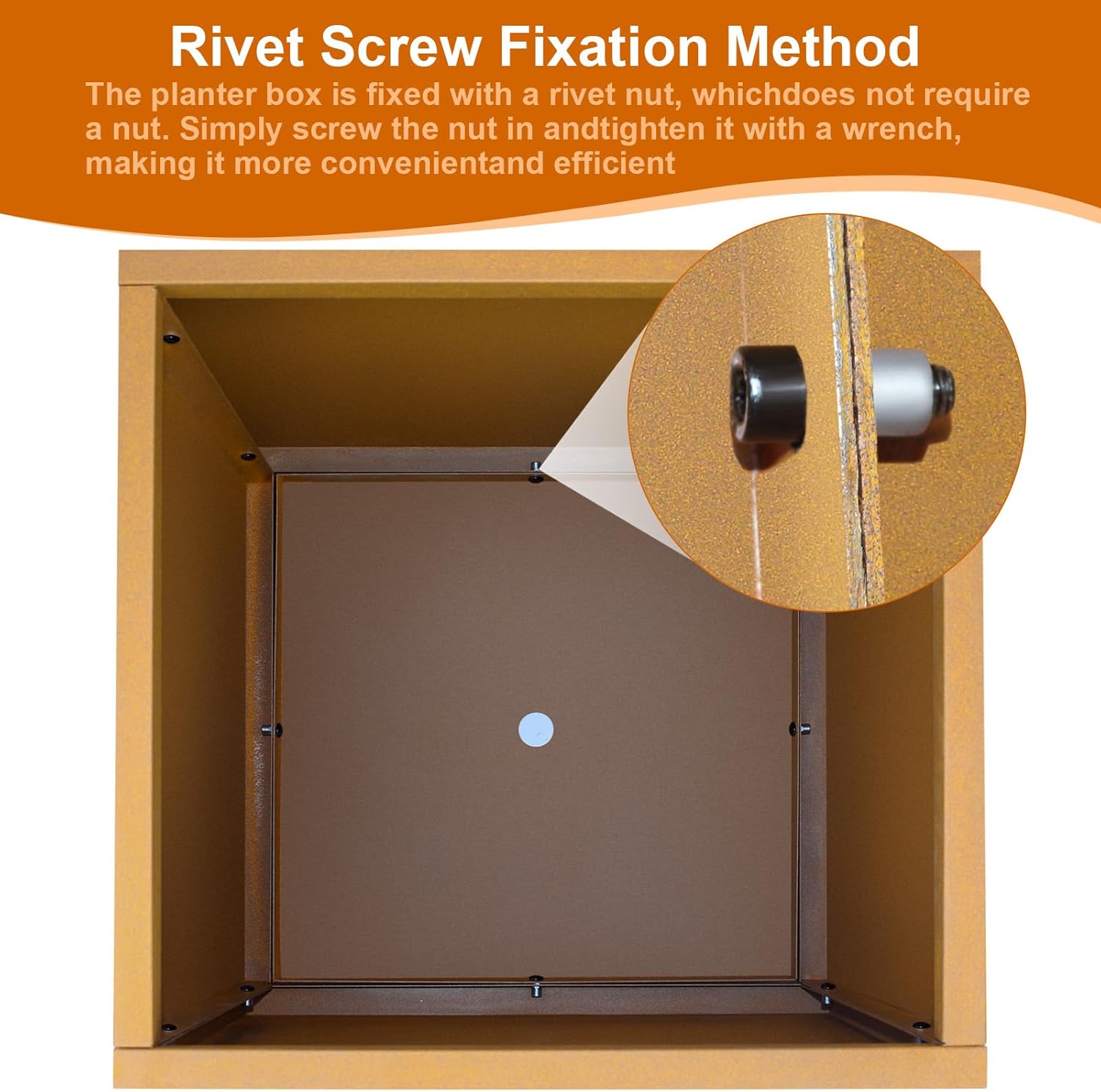 - 【Rivet Screw Fixation Method】: The planter box is fixed with a rivet nut, which does not require a nut. Simply screw the nut in and tighten it with a wrench, making it more convenient and efficient