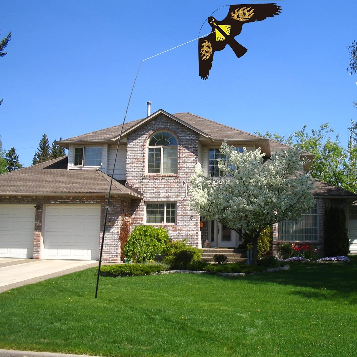- HOW BIRDS SCARER WORKS: The vibration generated by the bird scarer kite's wings in the wind, as well as the dynamic behavior of flying with the wind, the realistic patterns and colors, have the effect of scaring the birds, without causing them harm. It can protect farmland, Gardens, orchards