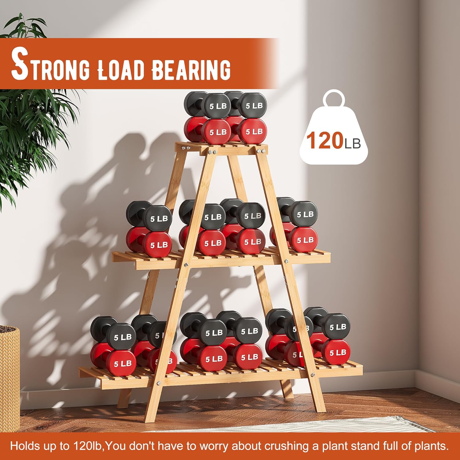 - STURDY CONSTRUCTION: Inspired by the stabilising principle of the triangle. The triangular structure makes the bamboo plant holder more stable, with a load-bearing capacity of up to 120lb.