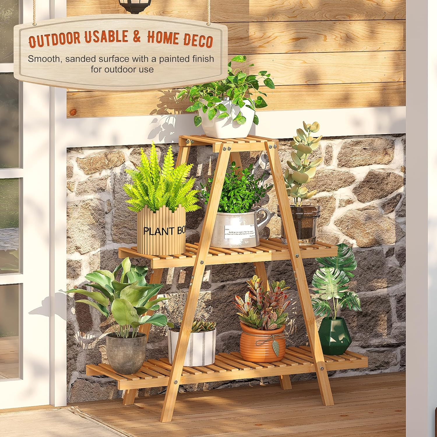 - VERSATILE DISPLAY: This 3-tier bamboo plant stand offers multiple levels to showcase various potted plants in your living space or outdoor garden.
