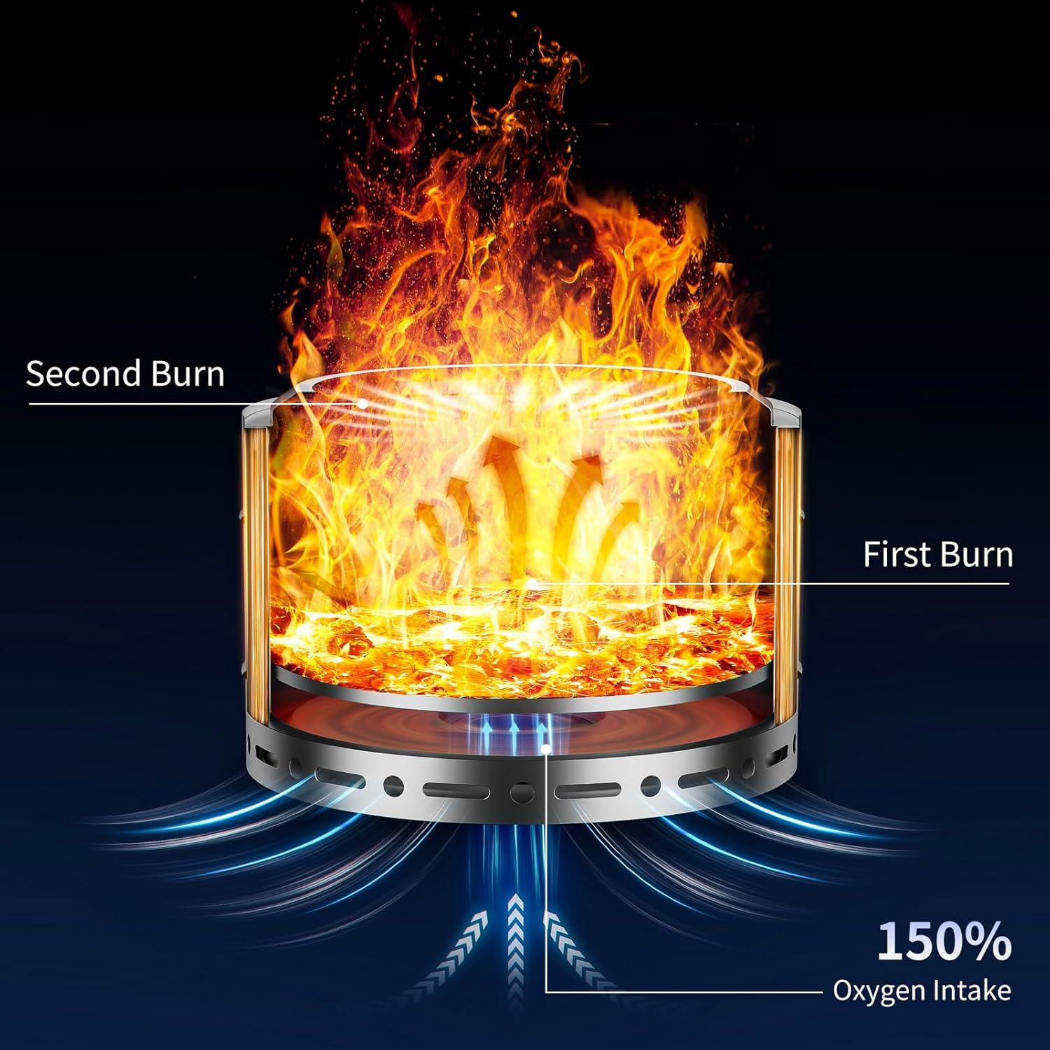 - [High Quality & Safe]Panovue smokeless fire pit crafted from high-quality stainless steel. Its robust construction ensures durability and resistance to rust, even under high temperatures. It won't collapse under the intense heat of the flame, providing you with peace of mind and the most comfortable experience possible. Additionally, the bottom brackets serve to protect your deck from any potential damage caused by heat. Enjoy worry-free outdoor gatherings with our reliable fire pit stove.