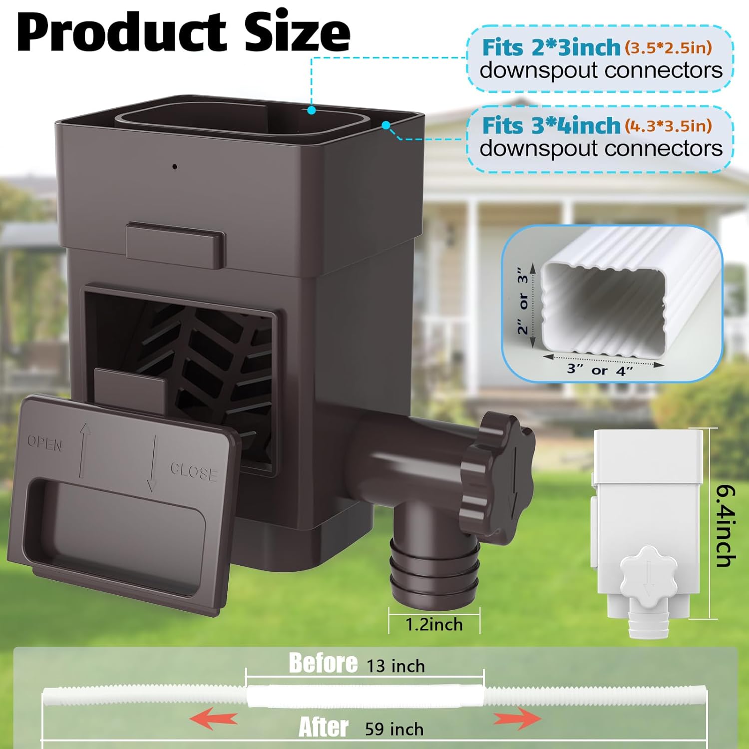 - Multiple Drainage System Sizes:Whether your drainage system is 2*3 inches or 3*4 inches, our rain barrel system can be perfectly installed. Flexibly adapt to various sizes, eliminating the hassle of mismatched drainage systems.