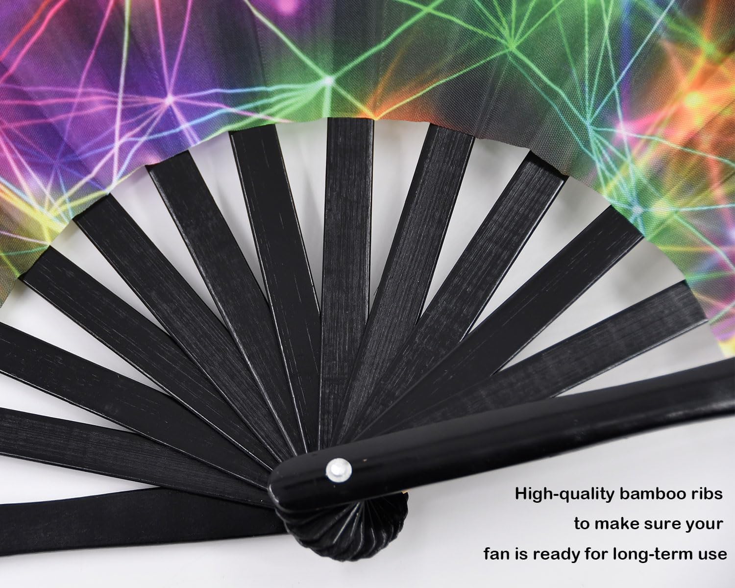 - OVERSIZE FANS: oversize rave fans. Each the large hand fan measures approx. Opens to 14 x 26 inches, Folds to 14 x 1 x 0.5 inches. oversize made you are sure to Wow Everyone in the Crowd anywhere anytime!
