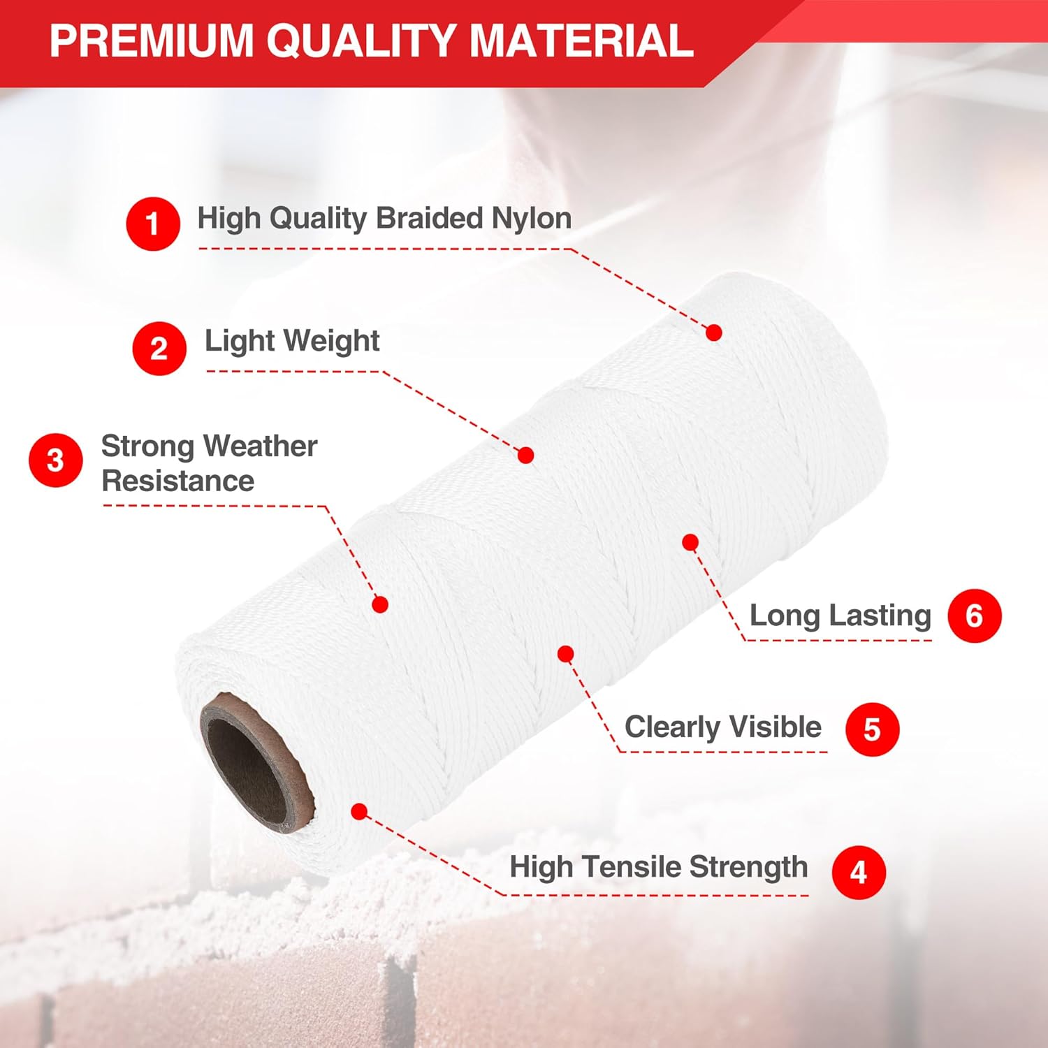 - Durability: Braided mason's line has excellent durability, can withstand the hit of a trowel, will not tangle and kink stretch, and its durability makes it easy to use. The tight, consistent weave of the string will make for a premium, easy-to-use cord. Remember, the tighter the braid, the stronger the strands