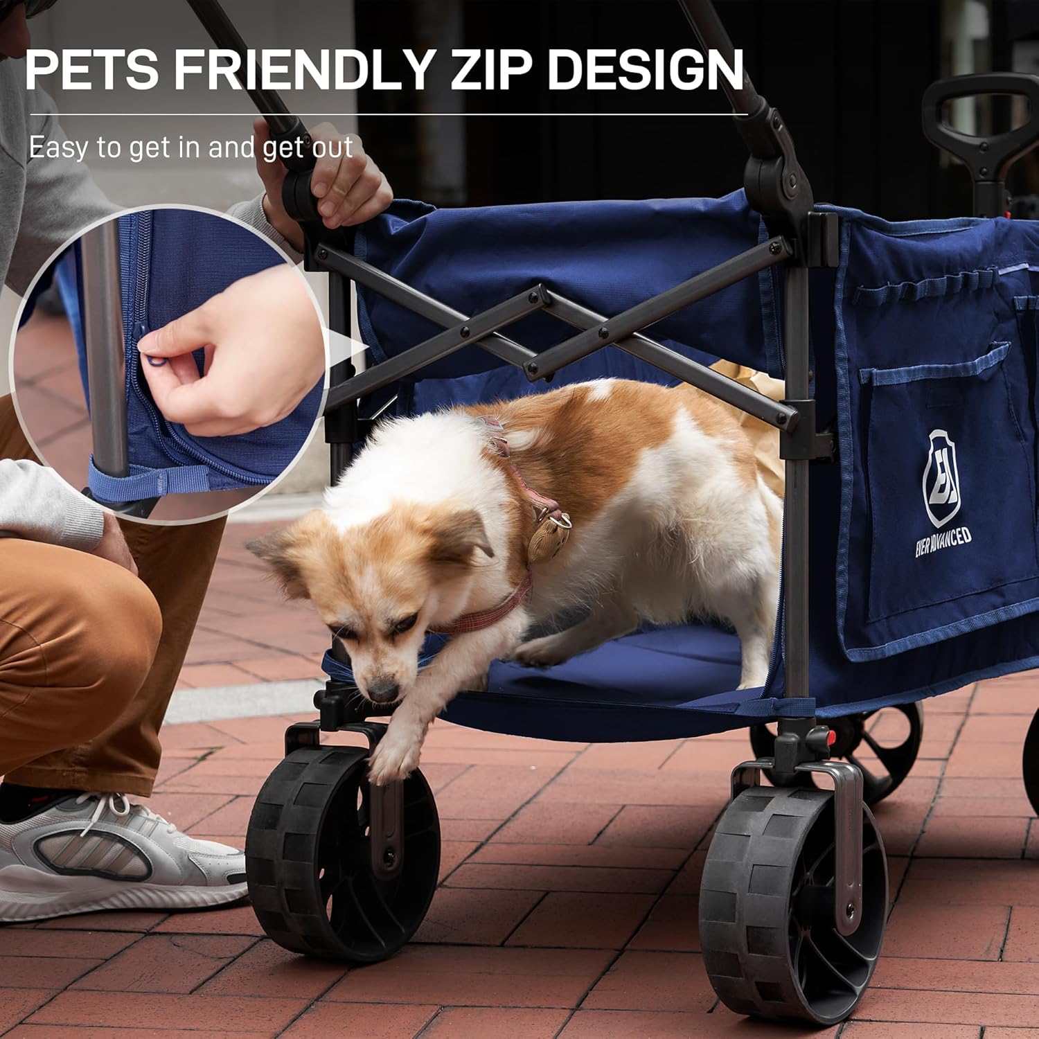 - CONVENIENCE AND SAFETY: The bottom of the push wagon has a zip design for storing long items, and the side of the utility wagon has reflective strips to protect your safety when you use it at night