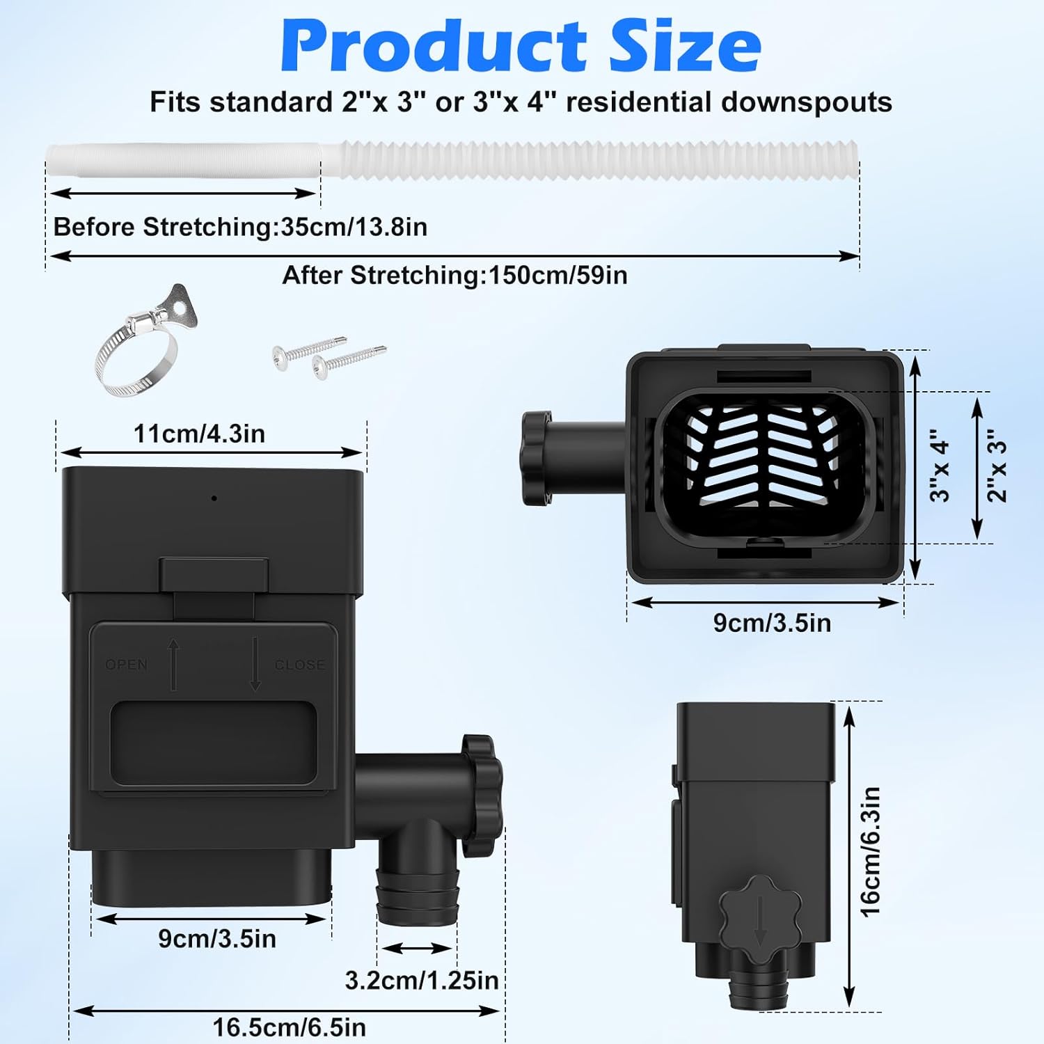 - Compatibility: Fits standard 2"x 3" or 3"x 4" residential downspouts. Please install the rain water catching system 18 inches above the rain barrel.