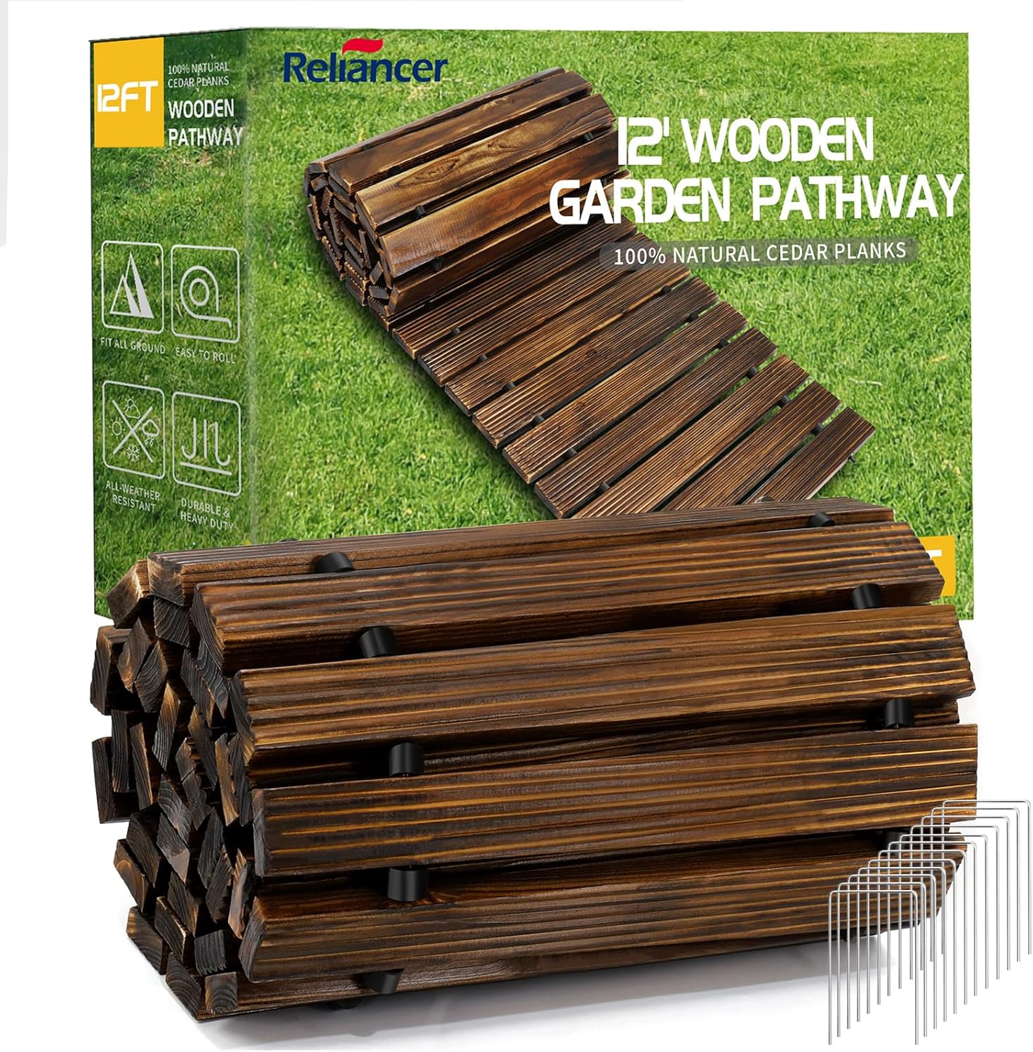 RELIANCER 12' Wooden Garden Pathway,Outdoor Roll Out Cedar Straight Walkway,Patio Path Decorative Garden Boardwalk Walkways,Weather-Resistant Roll Up Beach Wood Road Floor,Wedding Party Pathwaysc