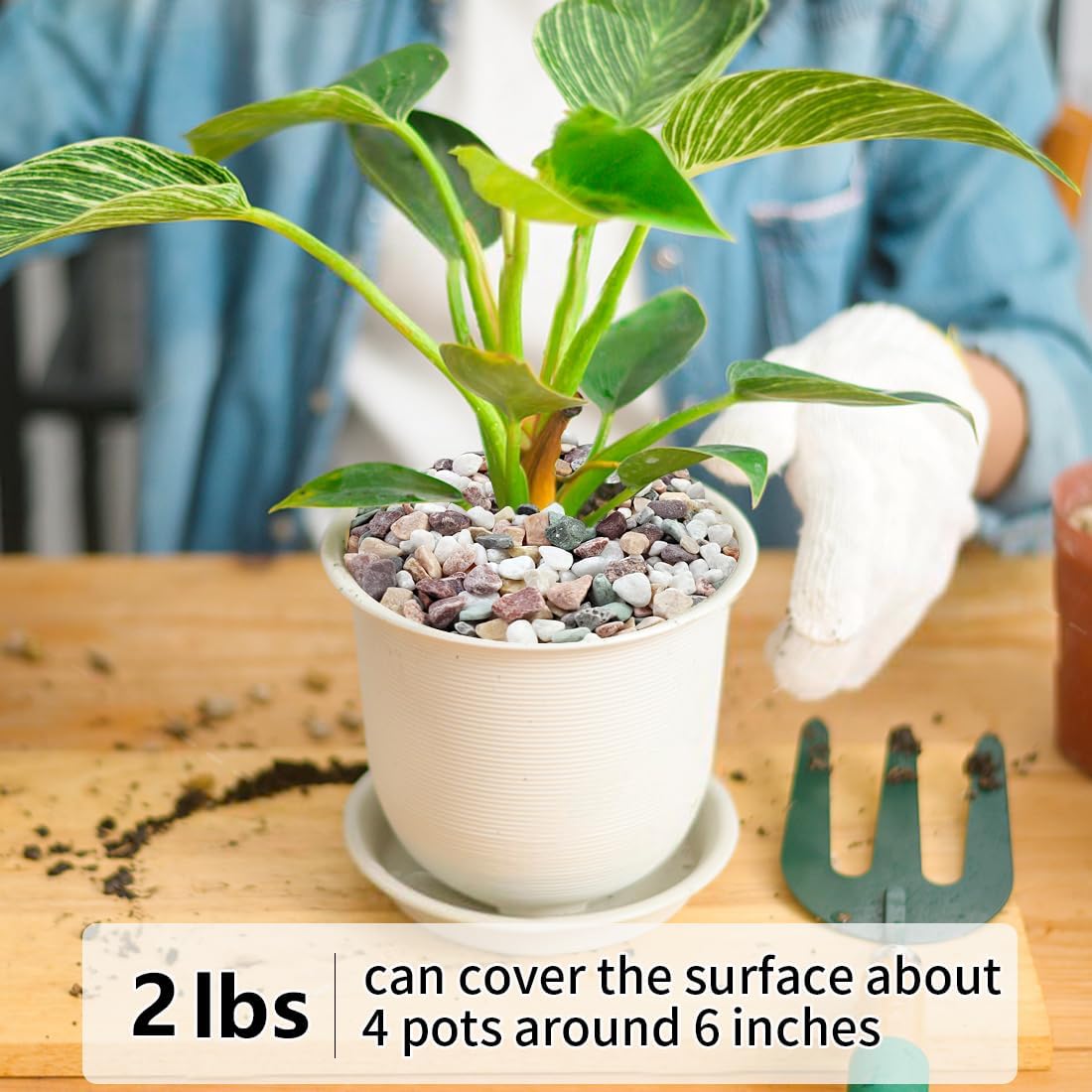 2LB Succulent and Cactus Gravel Pebbles, 1/5 Inch Natural Decorative Polished Stones, River Rocks for Vases Gardening Indoor and Outdoor Decorative Rocks, Colorful