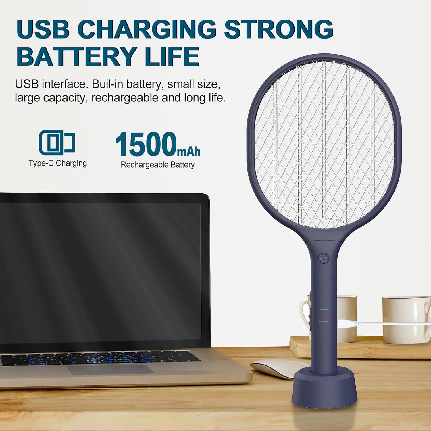 - 2-IN-1 BUG ZAPPER: VANELC electric fly swatter is not only an electric fly swatter, but also a fly trap, It not only has a base, but it can also stand on the table; Keep away from children and pets, and be more assured to kill mosquitoes, worry-free and effortless. Swarming bugs at night will no longer be a problem!