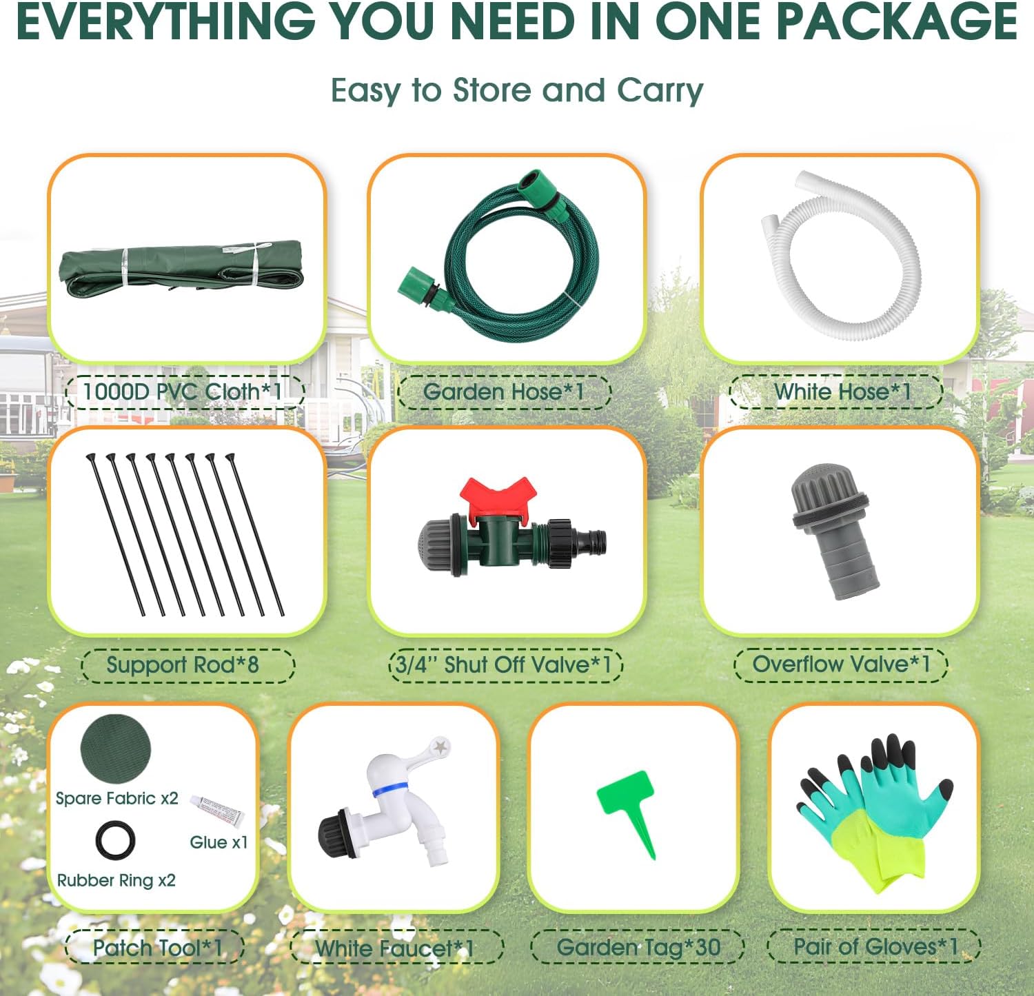 - Tough And Durable Made from 1000D fabric with a thickened PVC coating, rain water collection barrel not only prevents leaks and cracks but also ensures it can be safely exposed to sunlight without degrading or fading over time. In addition, rubber rings and patch material are specially equipped for repair, extending its service life and ensuring a long-lasting water storage solution.