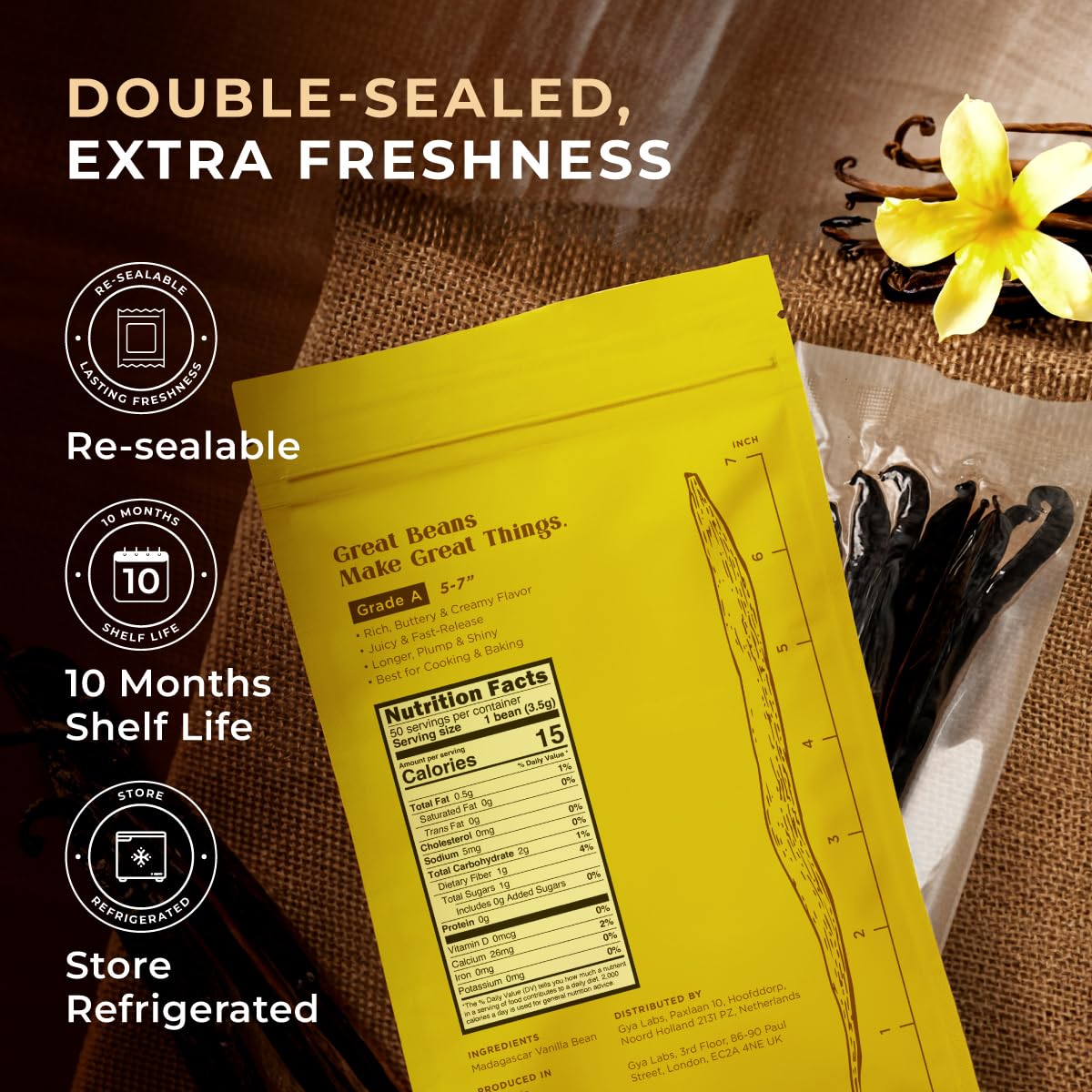 Gya Labs 50 Madagascar Vanilla Beans for Making Vanilla Extract, Baking - Grade A - 5-7 Inches (12 to 15 CM) long, Caviar Rich, Flavorful Fresh Pods