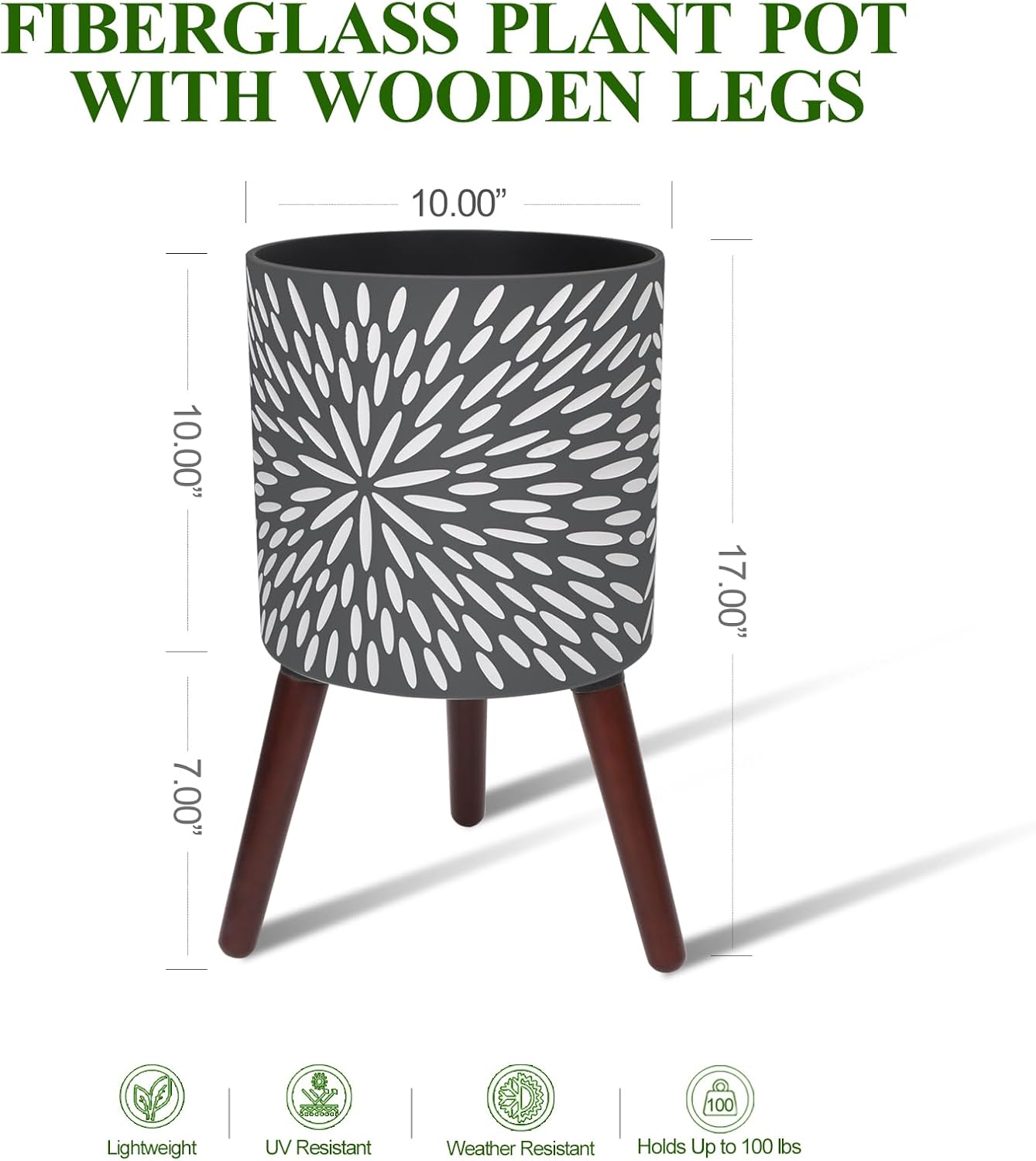 - 【Classic 3D Starburst Texture】The planter pot's surface boasts a striking starburst pattern, accentuated by sleek dark wooden legs. Modern and stylish, this planter seamlessly fits into any decor style, whether modern, bohemian, or vintage.