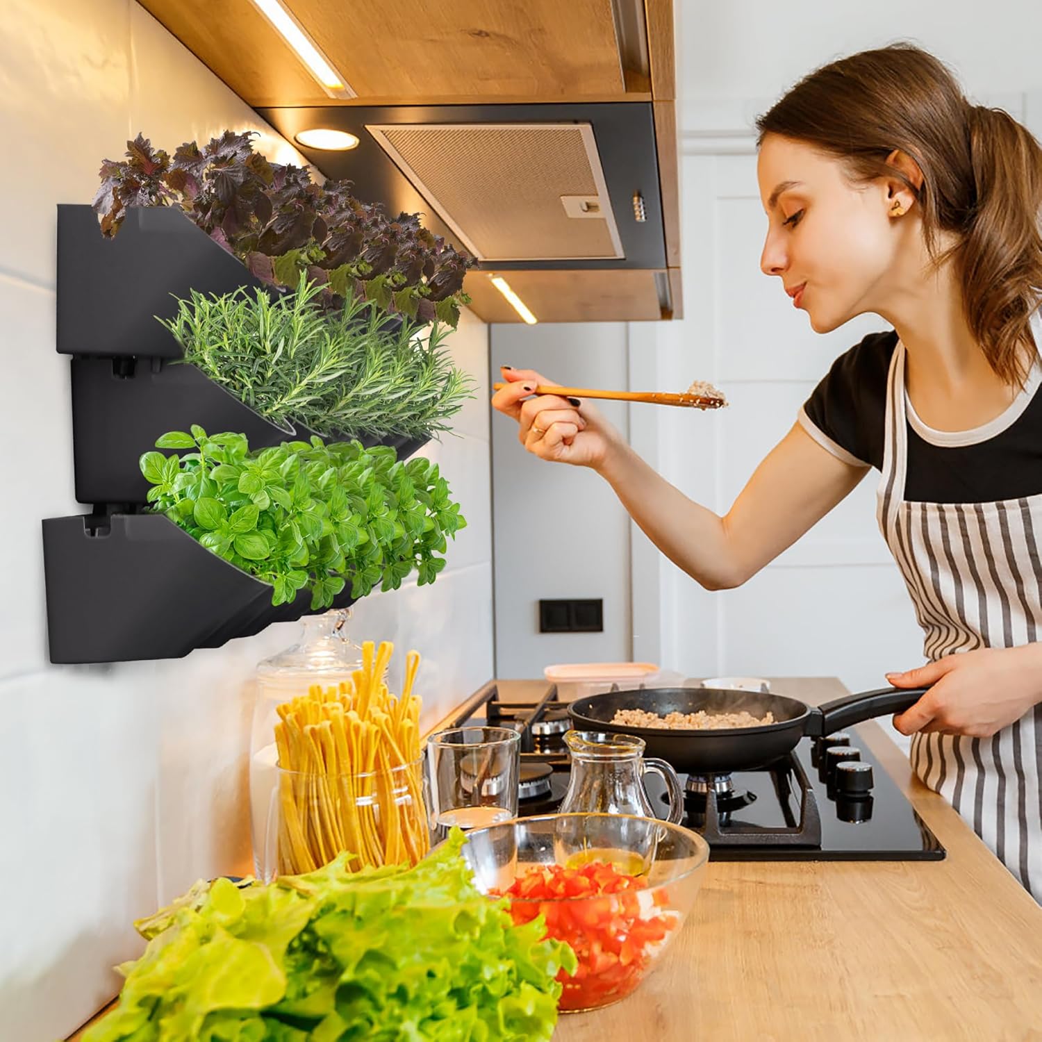 - INCLUDES 6 MODULAR WALL PLANTERS: We’ve included 6 3-pocket planters within our wall mounted hanging planter for you to create layers of potted plants for your vertical garden; Use a few wall hanging planter in one area or use them all; You can even add more layers to your vertical garden by purchasing additional compatible vertical garden pots; 6x 3-pocket planters make up 3.2ft², total of 18 plants required