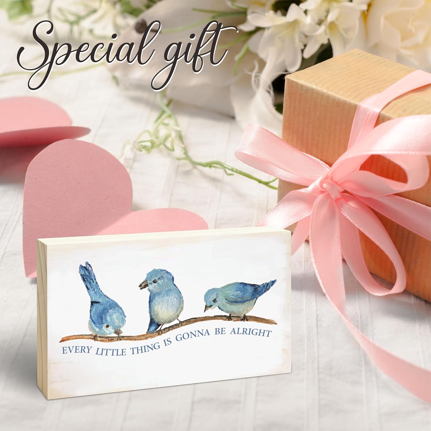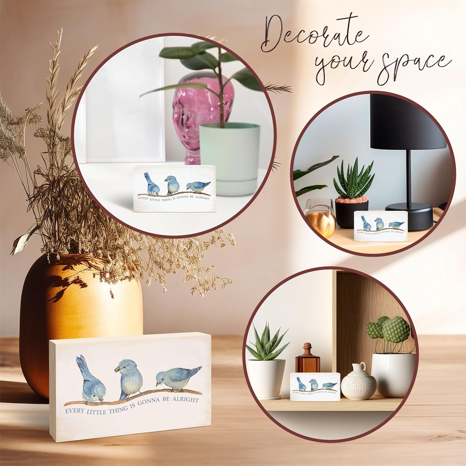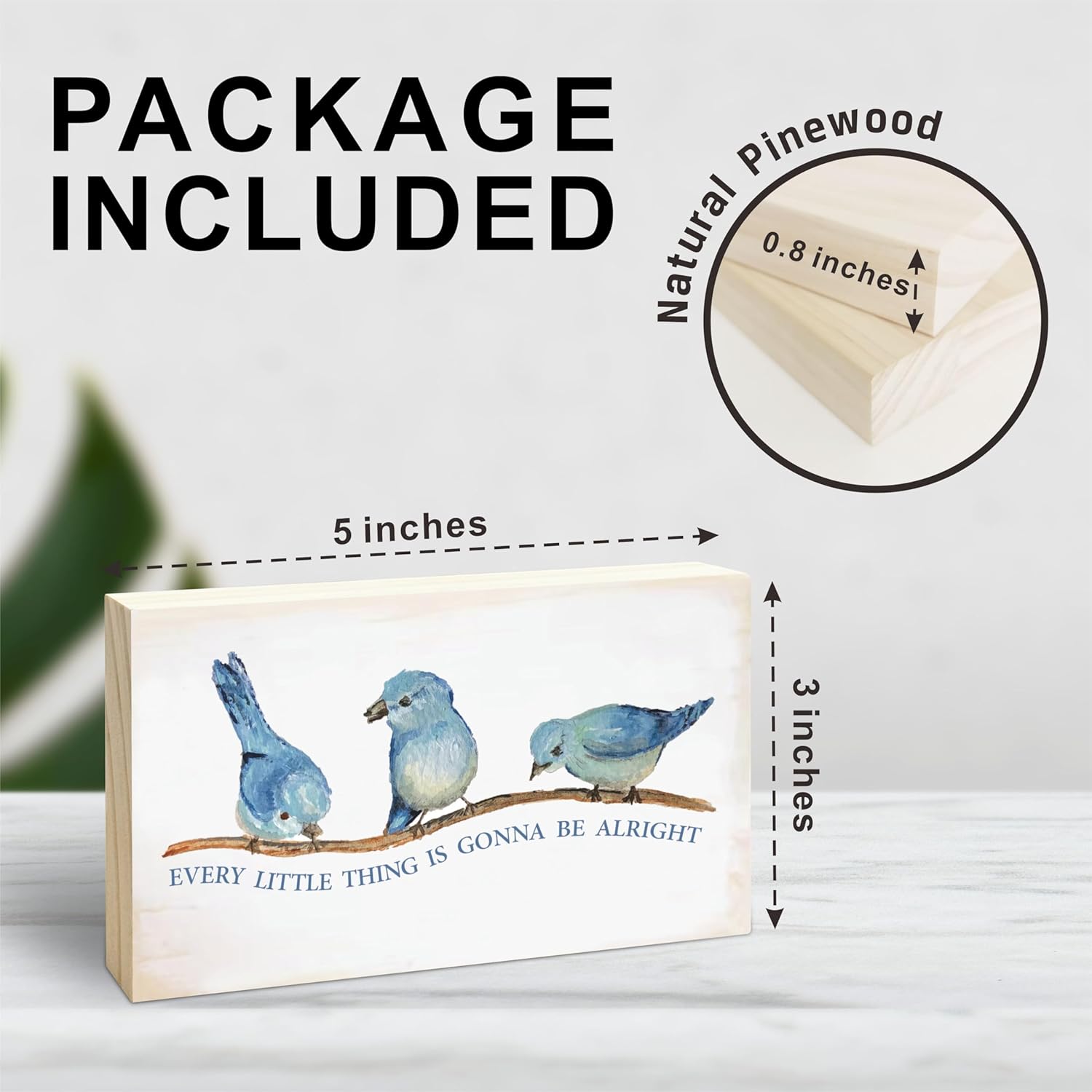 Rustic Pine Wood Block Sign - Every Little Thing Is Gonna Be Alright - Positive Wooden Plaque For Desk Top, Shelf, Living Room, Gift For Friends, Home & Office Decorations(3 X 5 Inches) - 39